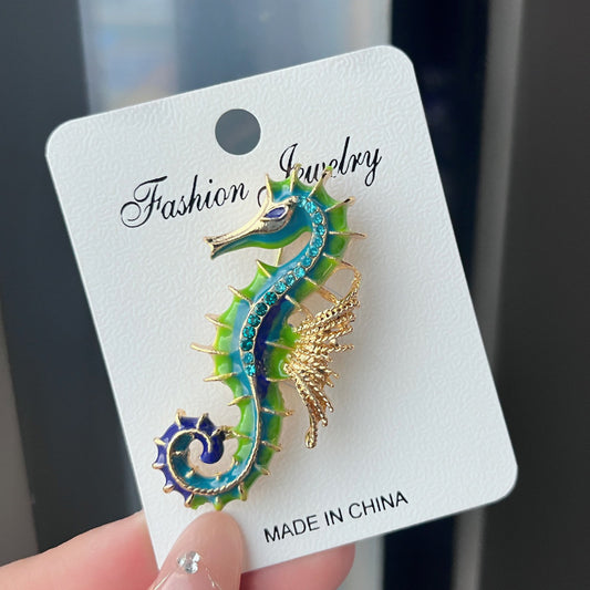 Sale price $6.49Shipping IncludedVintage-Inspired Seahorse Enamel Brooch Pin for Women - Colorful Accessories for Jackets and Bags