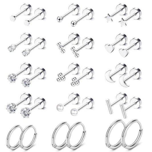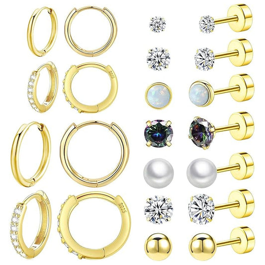 Sale price $13.99Shipping IncludedStylish Stainless Steel Stud Earring Set with Sparkling Gemstones – 16 Pairs in Multiple Sizes