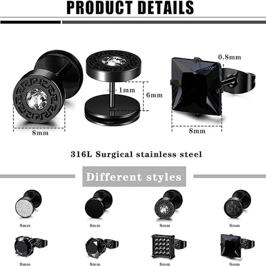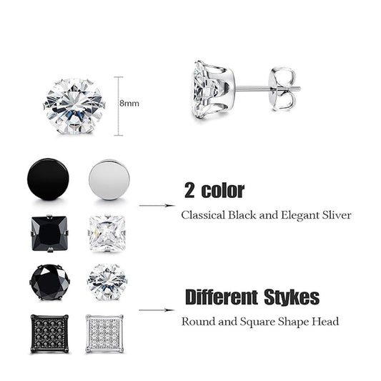 Sale price $12.49Shipping IncludedStylish Stainless Steel Black Stud Earring Set for Men and Women with Silver Cubic Zirconia