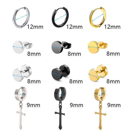Sale price From $6.49Shipping IncludedStylish Stainless Steel Earrings Set - 9 Pairs of Trendy Cross Drop Earrings and Hoop Combinations
