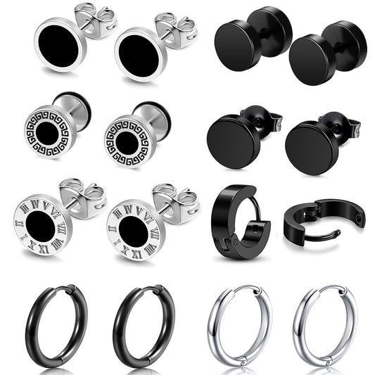 Sale price $11.49Shipping IncludedStylish Stainless Steel Earrings Set for Men - Geometric Black Dumbbell Design - Perfect for Casual and Formal Wear