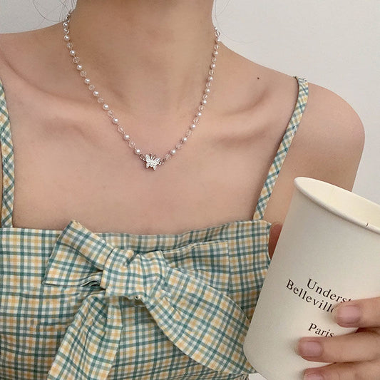 Sale price $6.99Shipping IncludedElegant Butterfly Choker Necklace for Women - Summer Crystal Pearl Design - Unique Minimalist Style