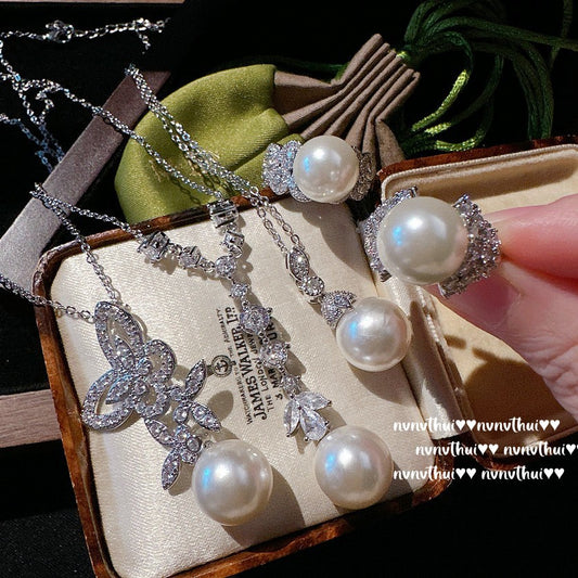 Sale price From $10.99Shipping IncludedElegant Butterfly Gemstone Pearl Necklace - Glacial Australian White with Deep Sea Beads and Zircon Drops