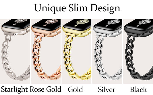 Sale price From $10.99Shipping IncludedStylish Stainless Steel Apple Watch Band - Adjustable Women’s Bracelet Strap in Silver, Rose Gold, and Gold