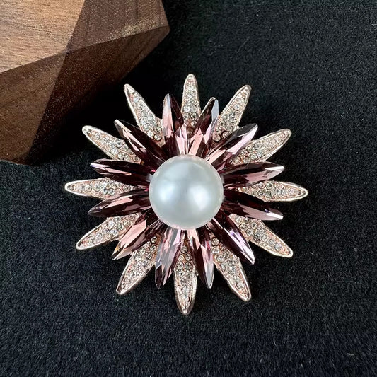 Sale price $6.99Shipping IncludedChic Flower Brooch Pin with Crystal and Pearl Accents – Perfect Accessory for Sweaters and Coats