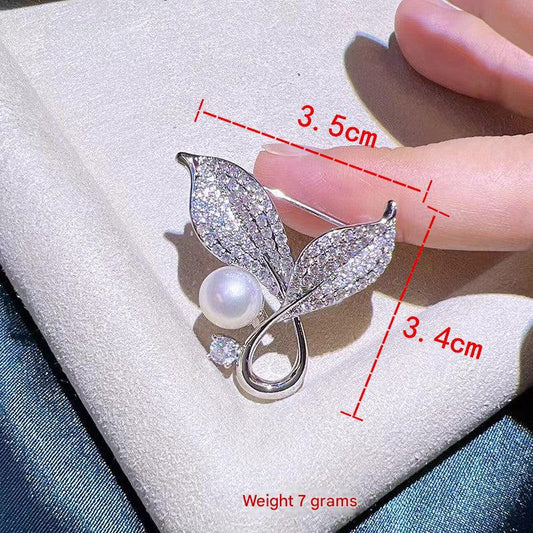 Sale price $7.49Shipping IncludedElegant Silver & Gold Leaf Brooch with Pearl Accents - Exquisite Fashion Accessory for Women
