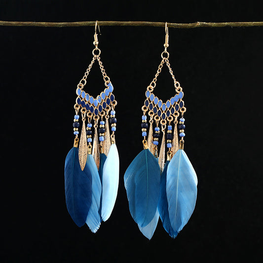 Sale price $7.49Shipping IncludedBohemian Feather Tassel Earrings for Women - Unique Vintage Style in Blue - Long Yunnan Travel Accessories