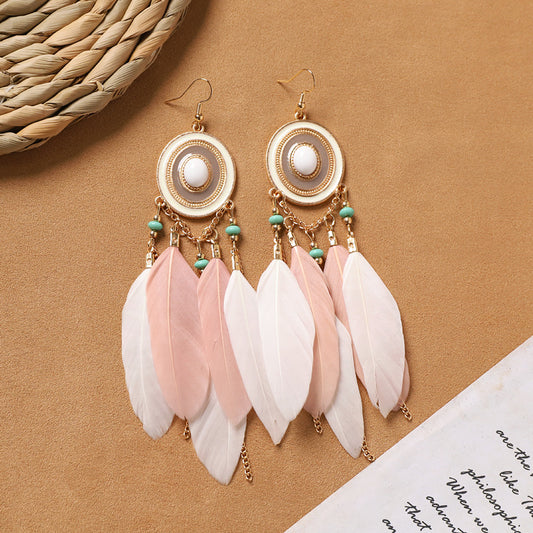 Sale price From $6.49Shipping IncludedBohemian Feather Earrings – White Long Tassel Vintage Style for Women, Perfect for Vacation and Photoshoots