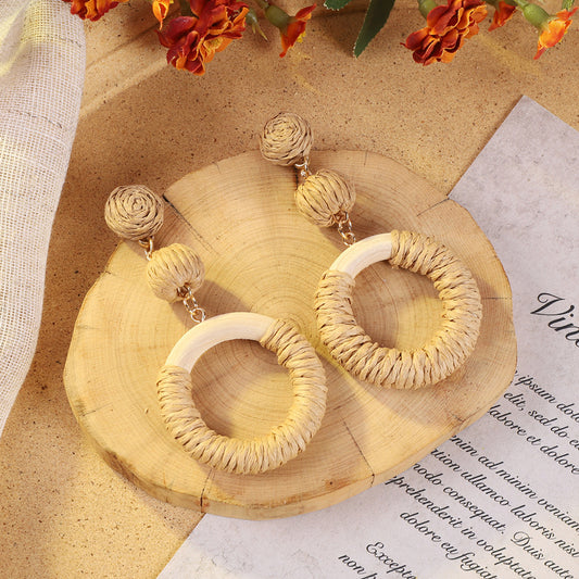 Sale price From $7.99Shipping IncludedHandcrafted Boho Chic Rattan Drop Earrings for Women - Perfect for Beach Vacations and Bohemian Styles