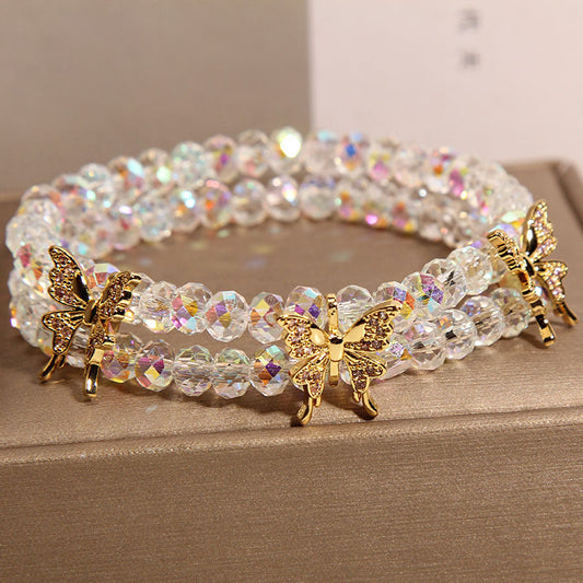 Sale price $11.99Shipping IncludedElegant Double Layer White Crystal Bracelet for Women - Luxurious Butterfly Design, Perfect Gift for Friends and Students