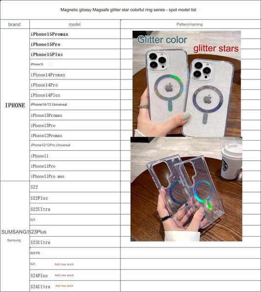 Sale price $10.99Shipping IncludedVibrant Magnetic Clear Case for Samsung Galaxy S22/S23/S24 - Shockproof, Stylish Design with Starry Glitter Finish