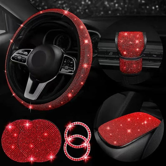 Sale price $36.99Shipping IncludedLuxury Car Steering Wheel Cover Set with Bling Rhinestones, Universal Fit, 7-Piece Set Including Cup Pad and Armrest Cushion