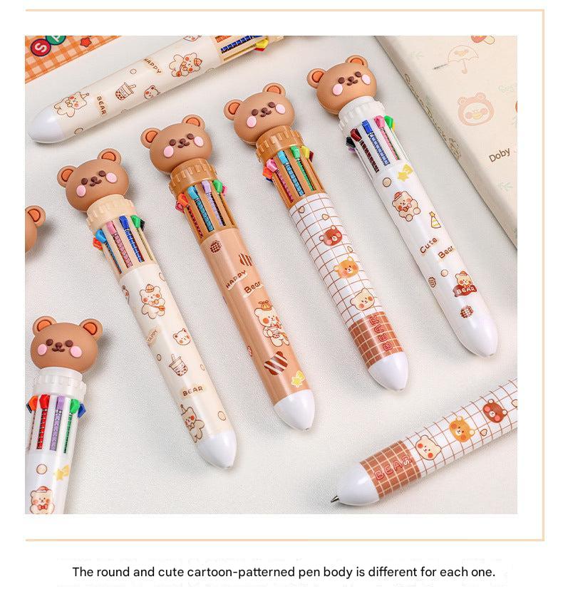 10-Color Cartoon Retractable Ballpoint Pen Set for Kids and Students - Durable Plastic, 0.5mm Fine Point