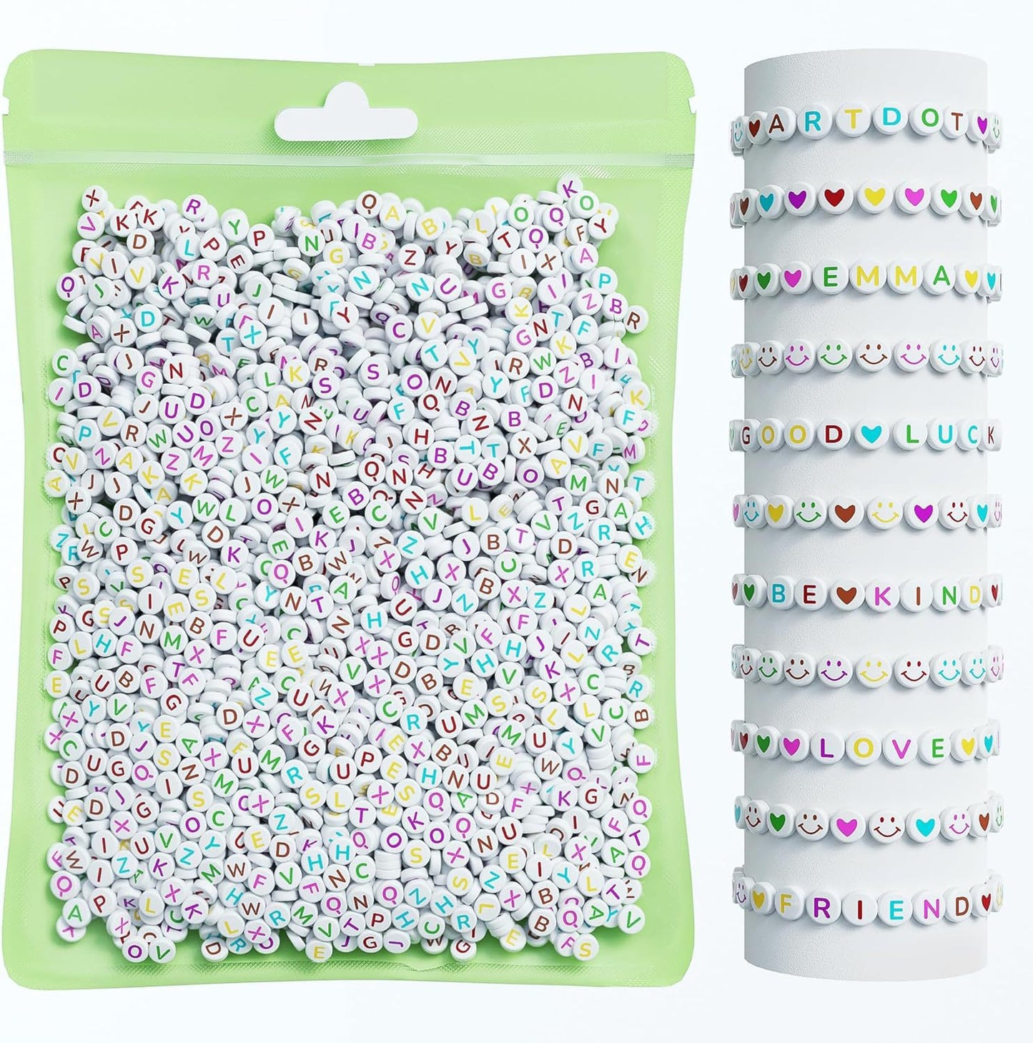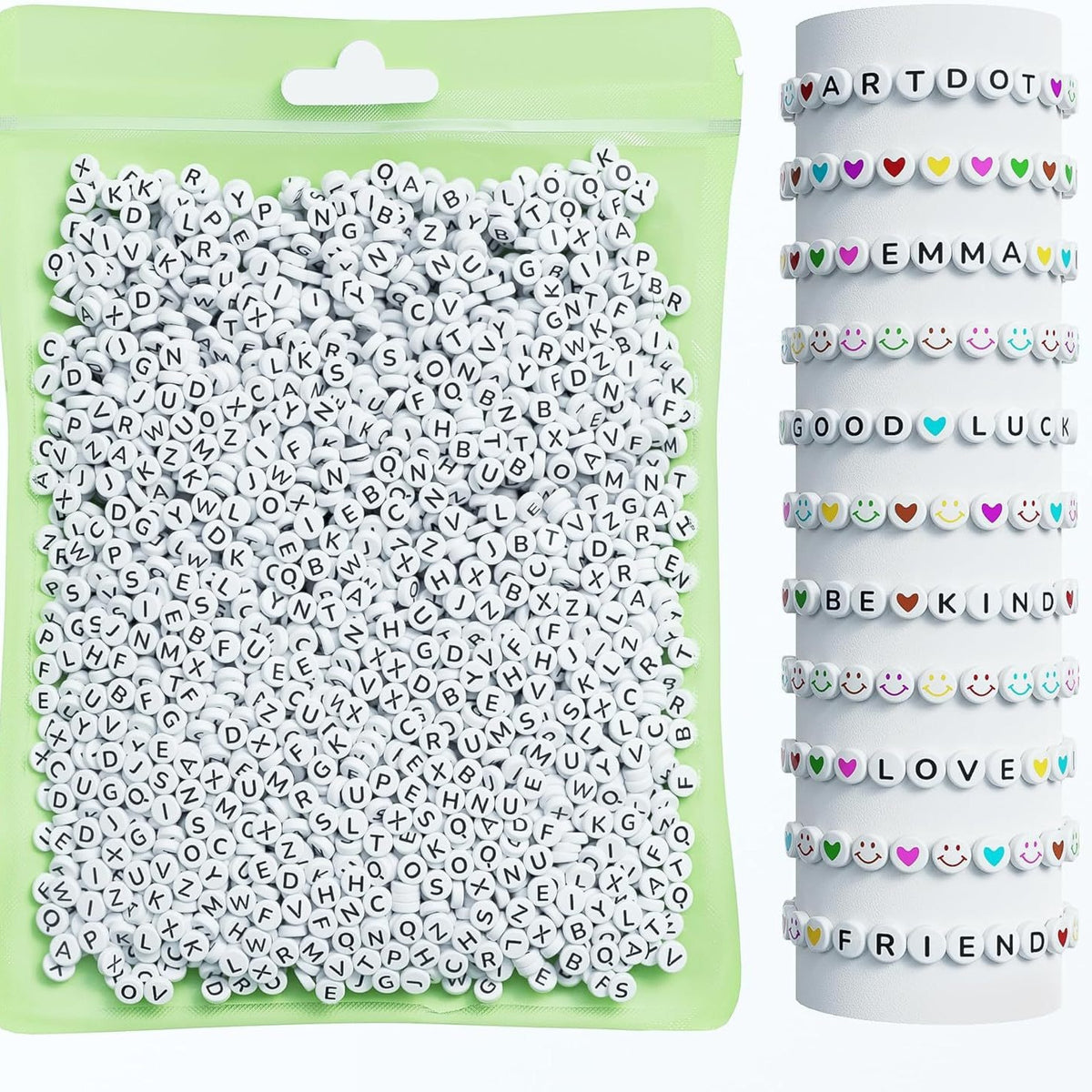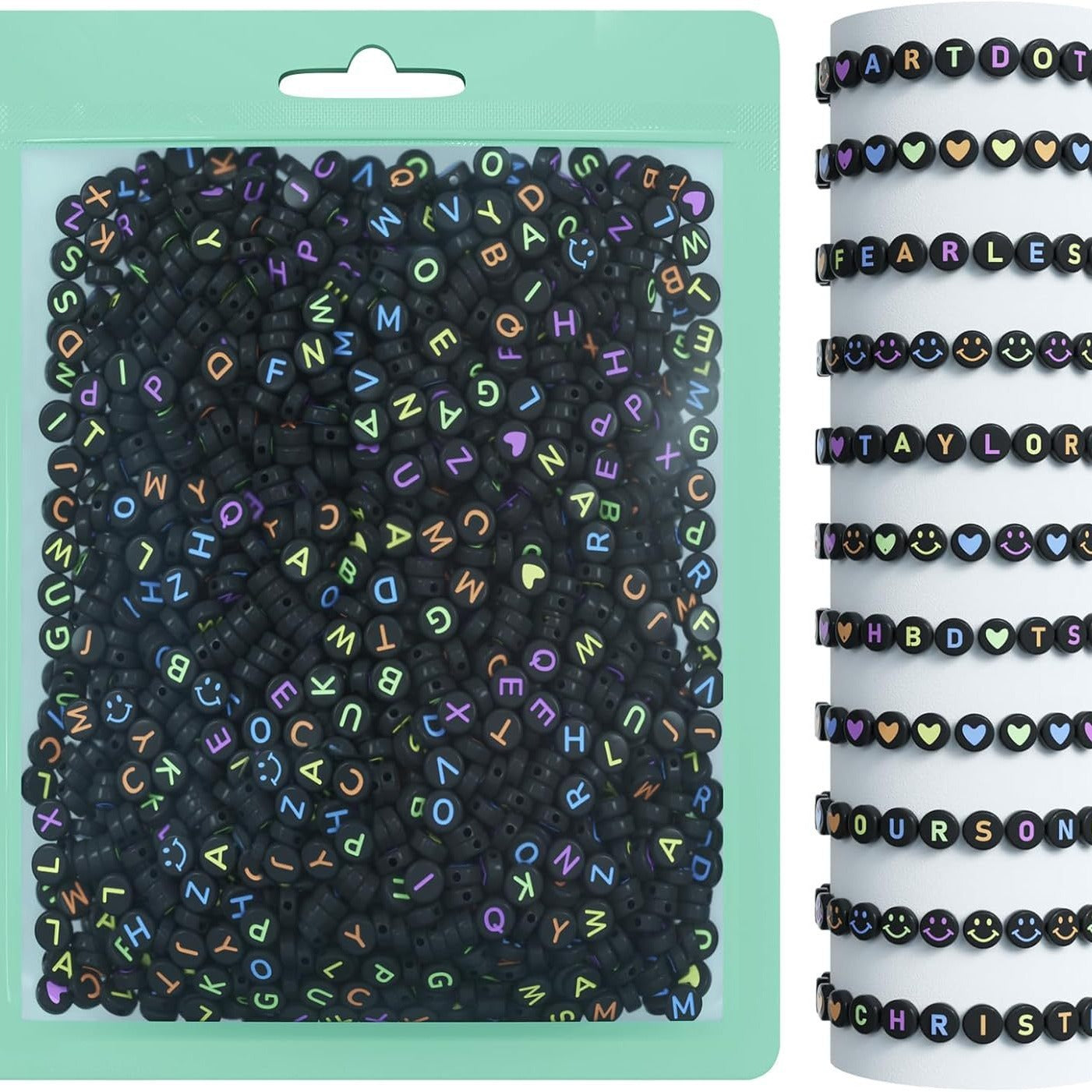1000-Piece DIY Alphabet, Heart, and Smiley Face Bead Kit for Jewelry Making and Crafts