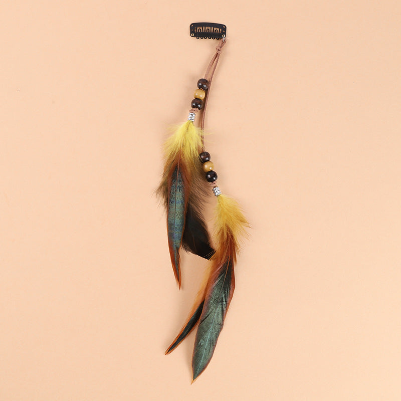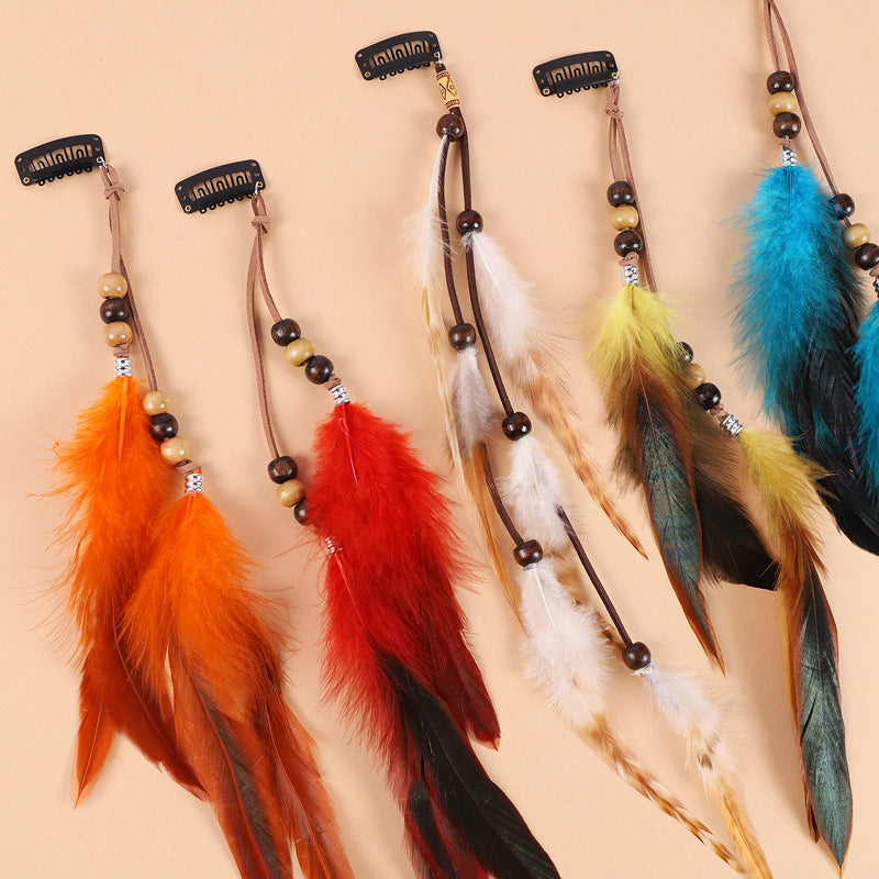 Bohemian Feather Hair Clip with Tassels - Vintage Inspired Beach Accessory for Women