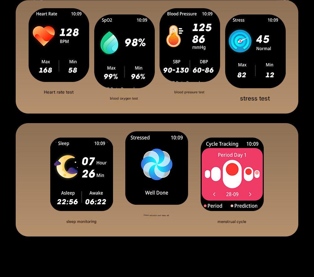 • Comprehensive Health Monitoring: Measure heart rate, blood oxygen levels, and track your fitness progress with ease.