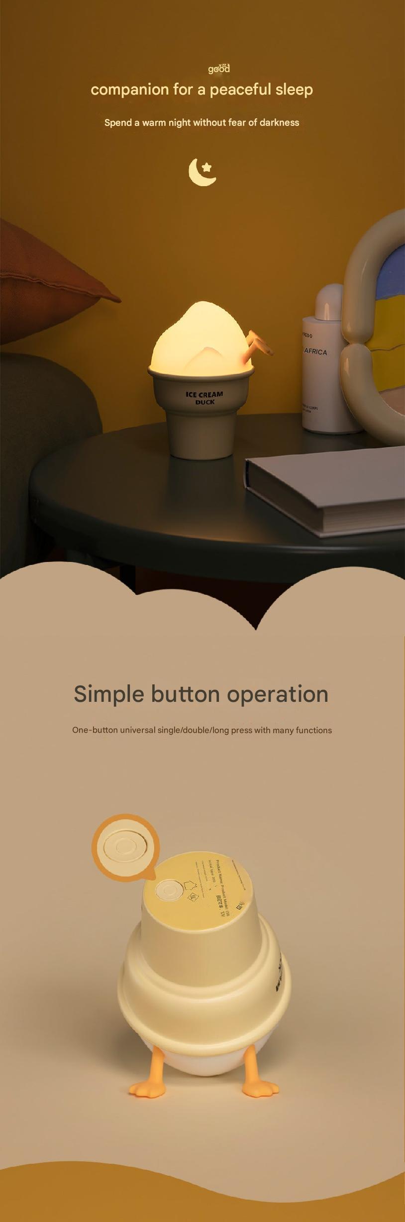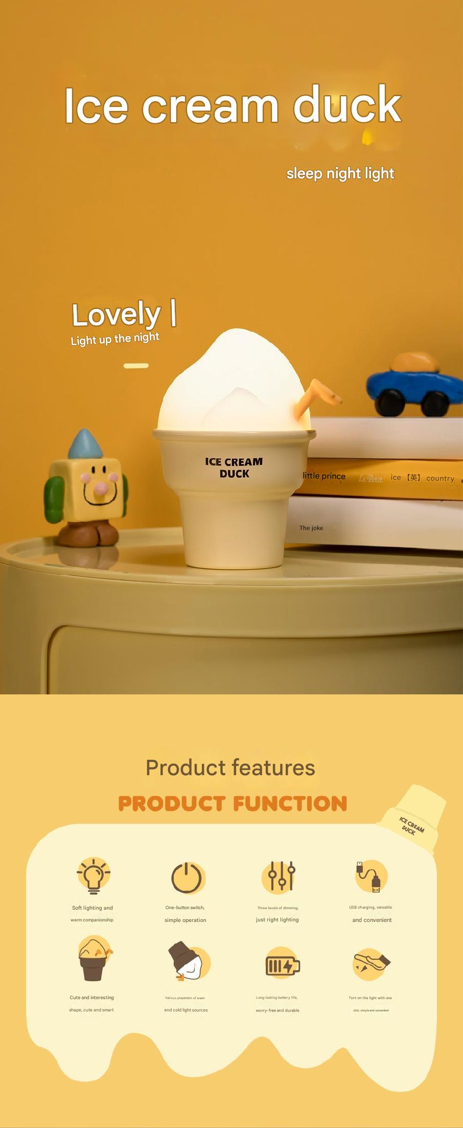 touch-sensitive night light ice cream design