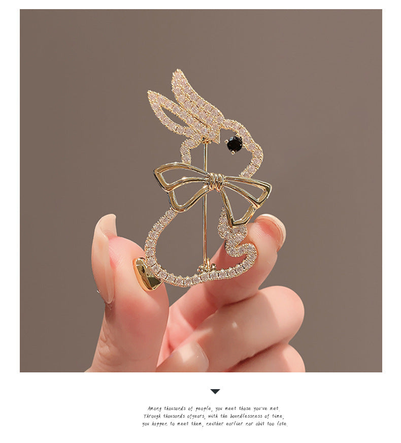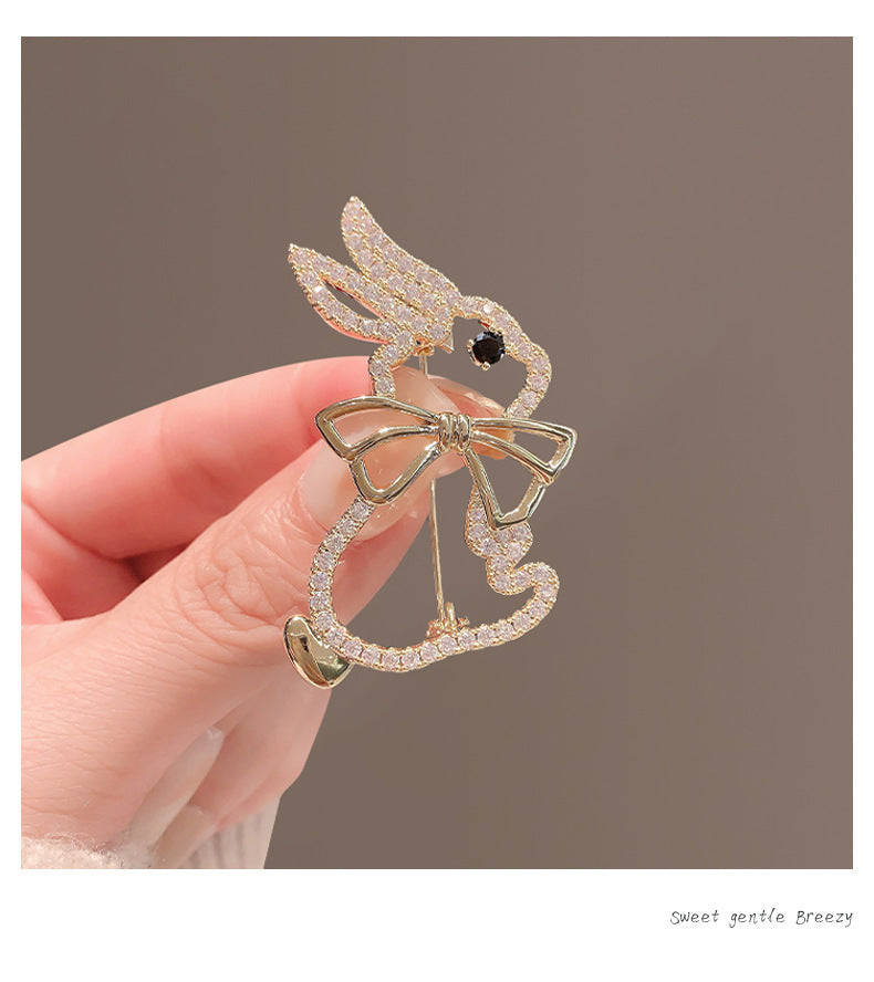 Charming Anime Style Rhinestone Bunny Brooch - New Year Zodiac Rabbit Pin for Fashionable Men & Women