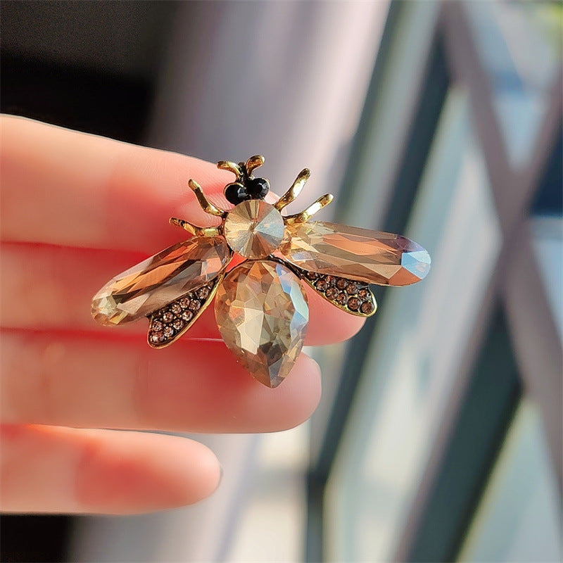 Charming Glass Acrylic Bee Brooch - Elegant Insect Pin with Sparking Rhinestones