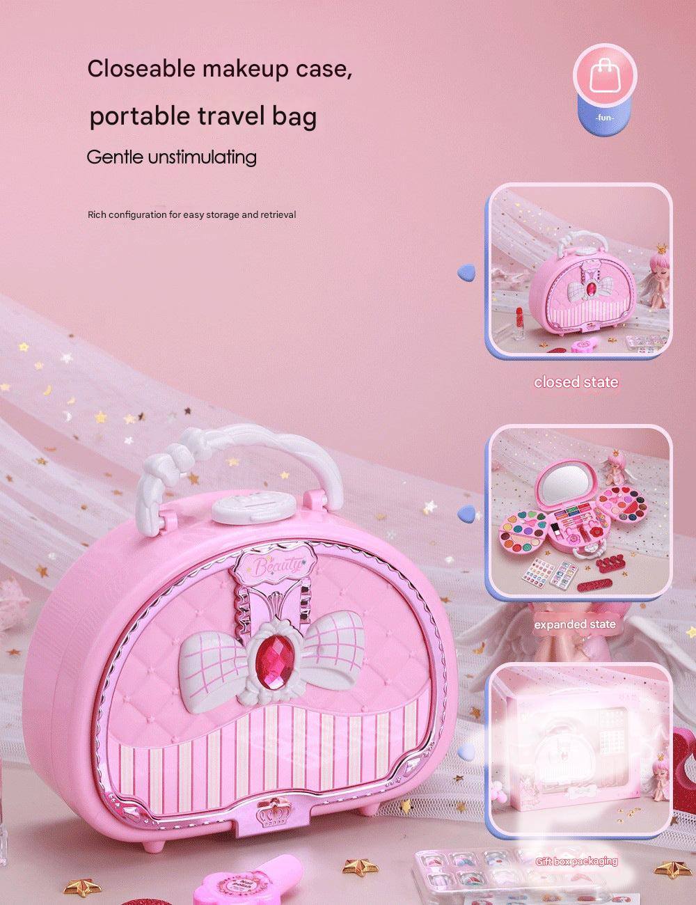 Explore the joy of pretend play with our Cosmetic Playset designed for kids ages 4 to 6, featuring kid-friendly, non-toxic makeup. This set includes vibrant nail polish and an eyeshadow palette, all contained in a cute, portable case. It's an excellent way for your child to enhance their creativity, while also developing crucial skills such as coordination and communication through hands-on play. Perfect as a gift, this makeup kit promises hours of fun and bonding for parents and children alike.
