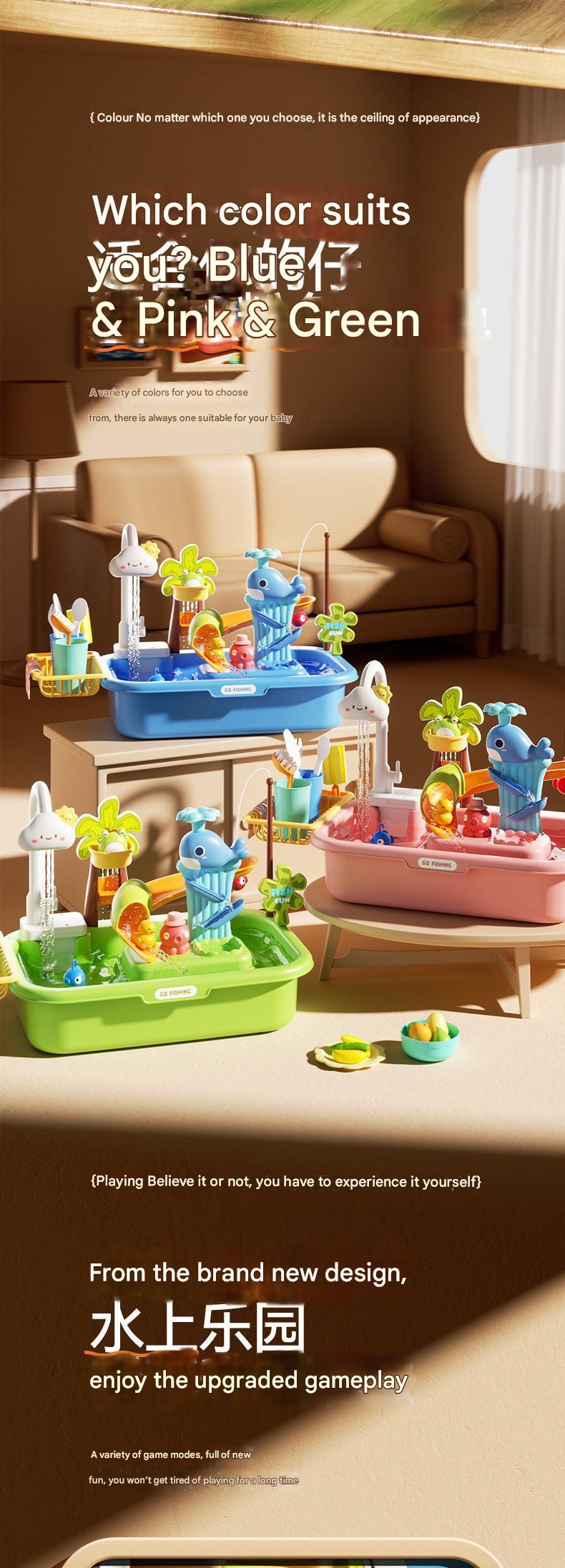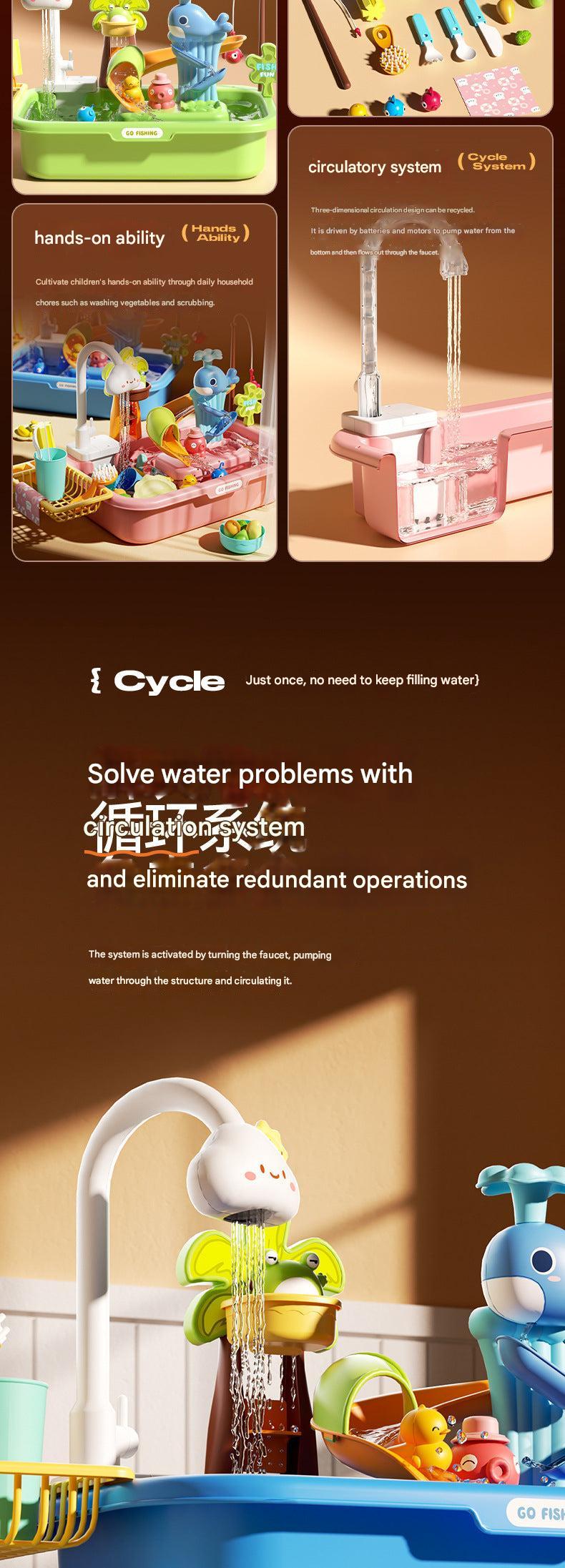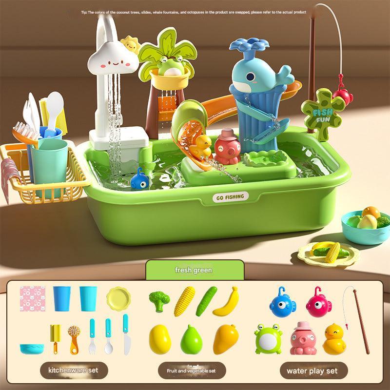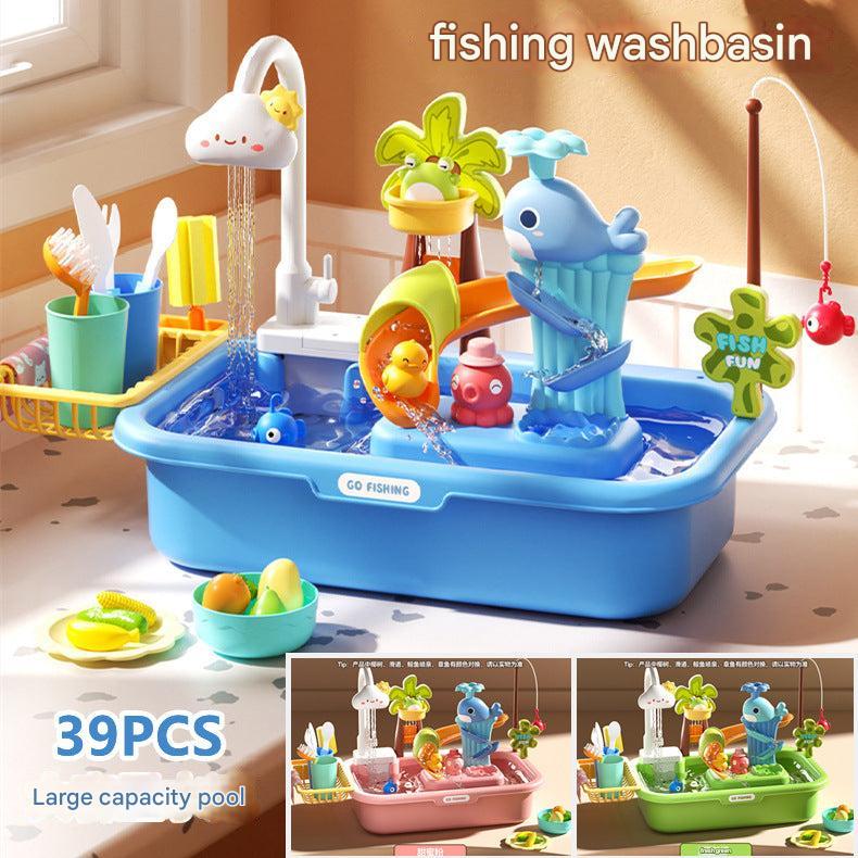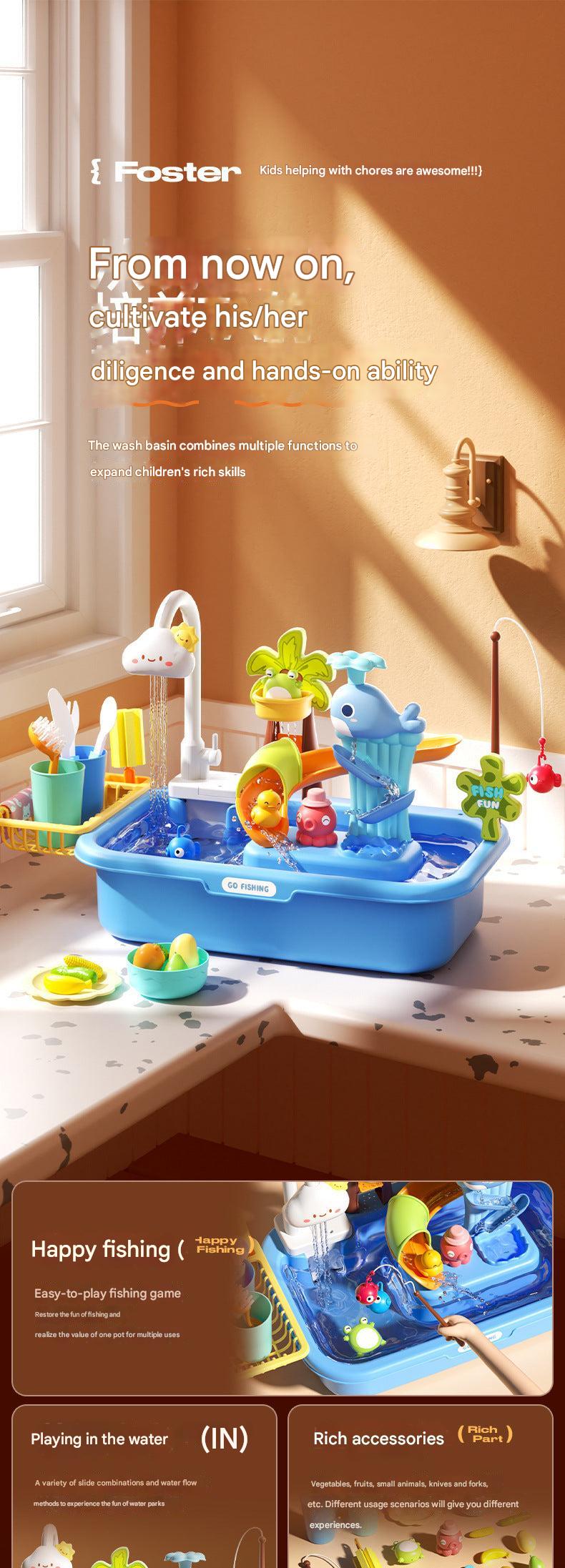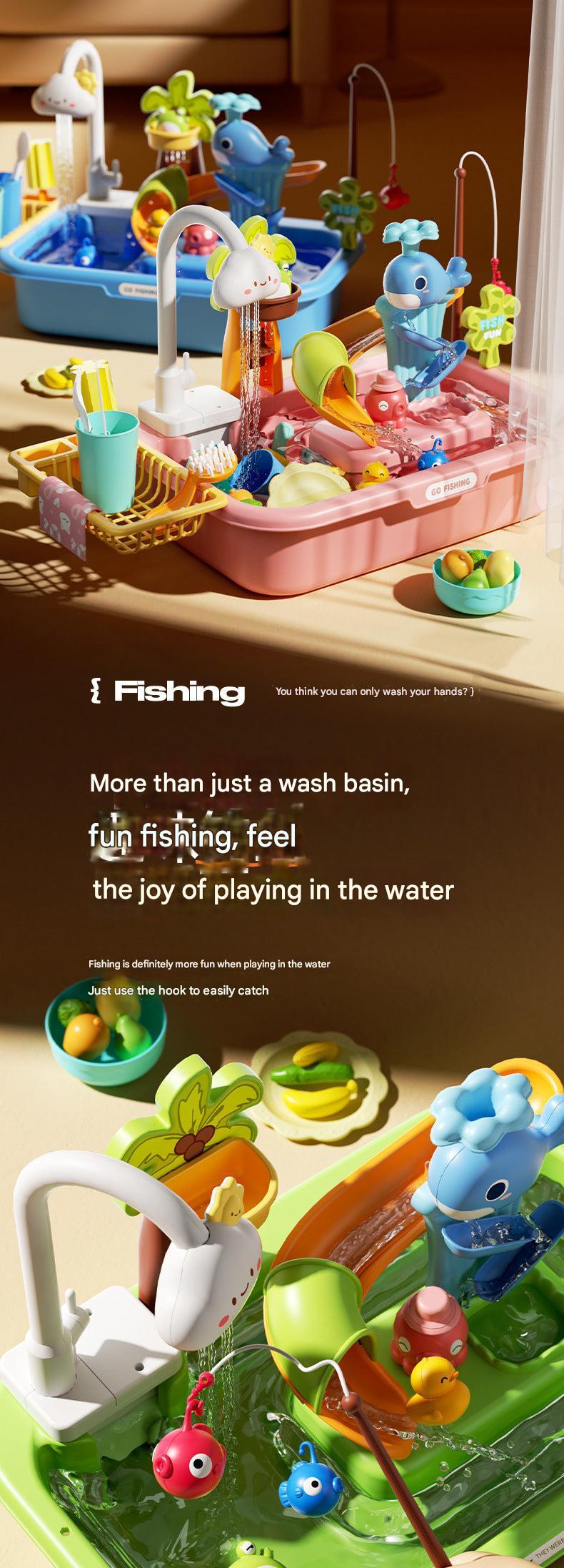 Children's Interactive Play Sink Set with Running Water & Fishing Game, Fun Pretend Play Kitchen Toy for Kids 3-6 Years Old
