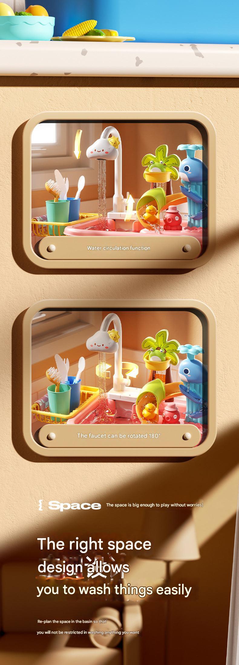Introduce your child to the joys of cooking and sensory play with our Interactive Play Sink Set. This set includes a battery-powered sink with actual running water, allowing children to dive into a realistic kitchen setting. With 39 pieces including utensils, plates, and pretend food, along with an engaging fishing game, it offers countless hours of fun. Crafted from durable and safe materials, it's designed to last through many play sessions, making it not only fun but also a valuable developmental tool.