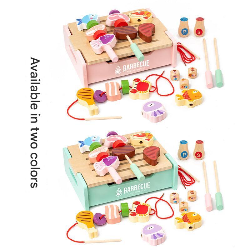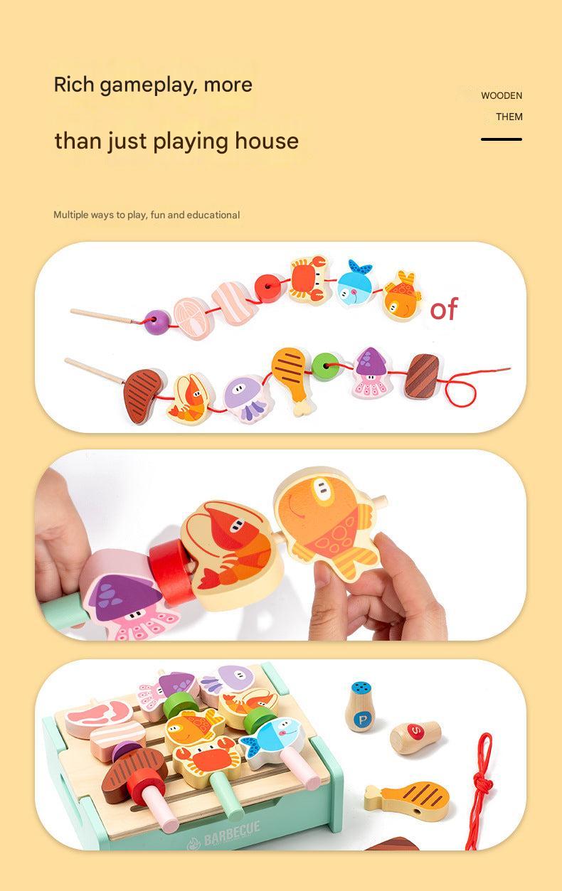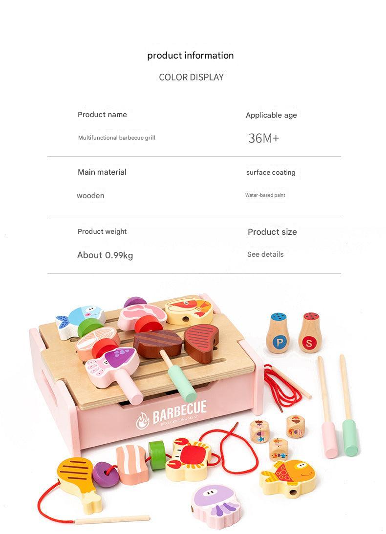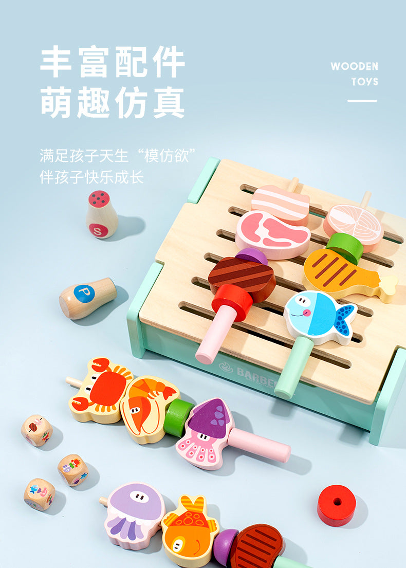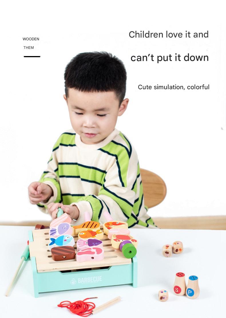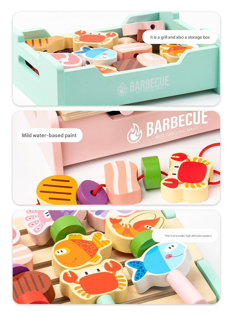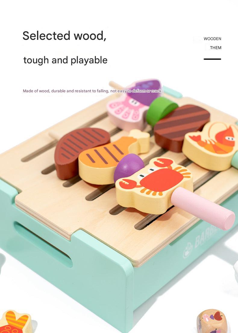 Children's Wooden Pretend Play BBQ Grill Set - Interactive Family Cooking Toys for Boys and Girls, Ages 4-6