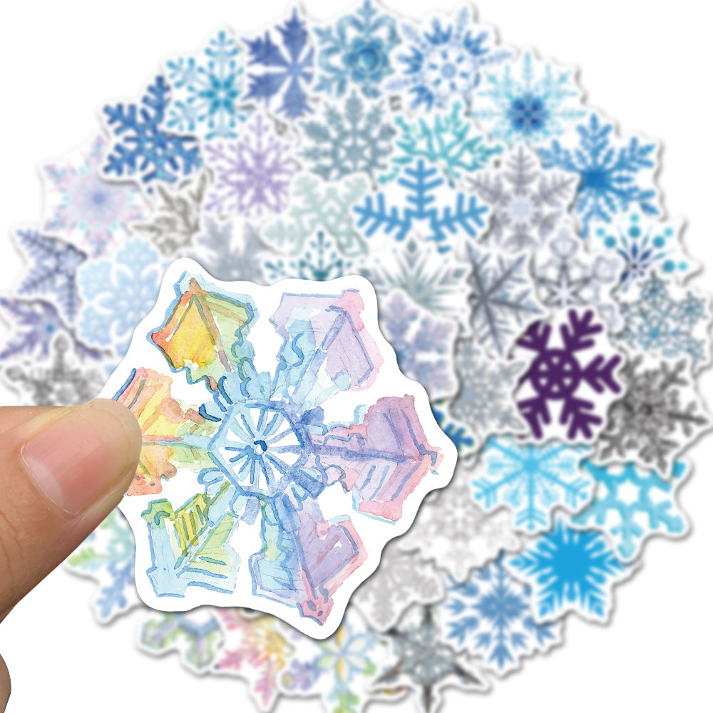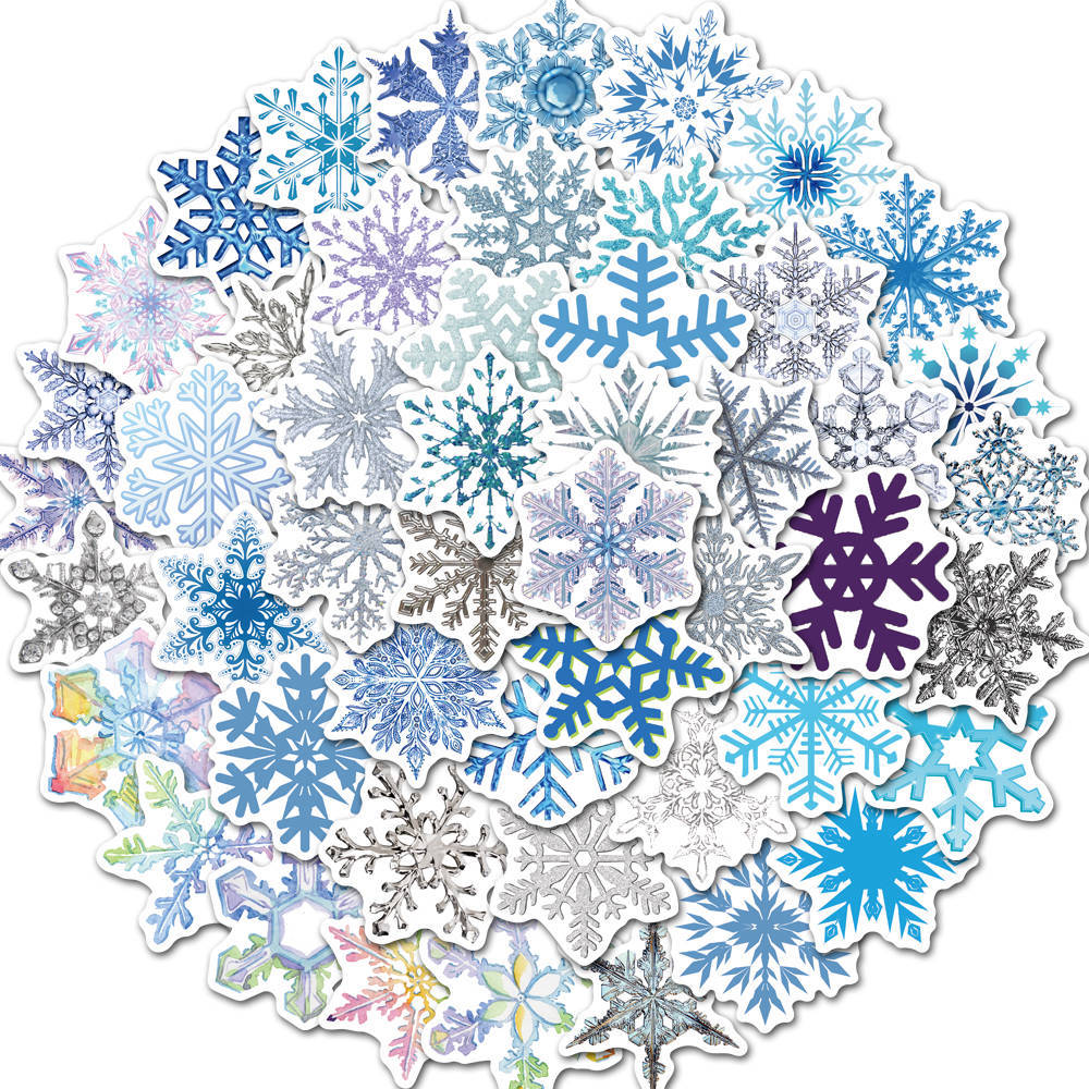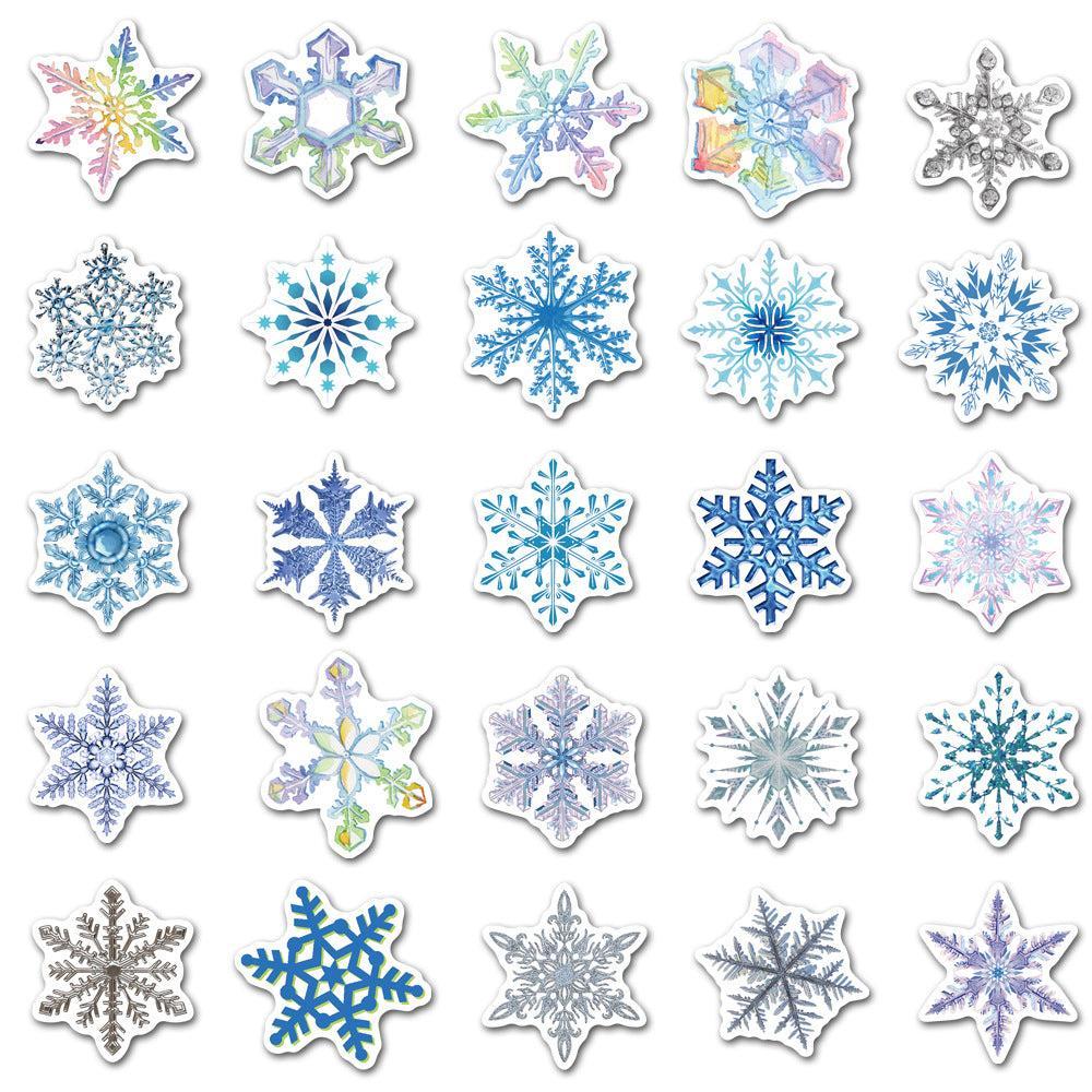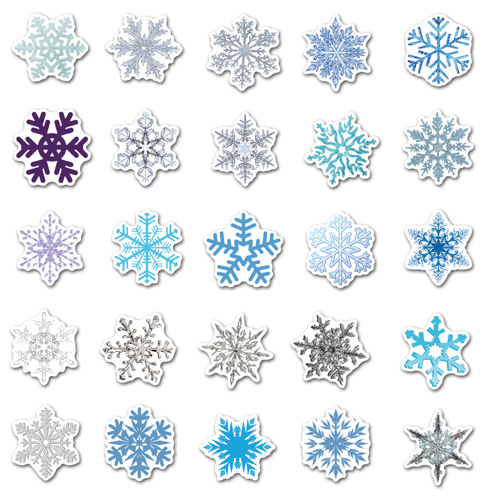 Christmas Festive Sticker Pack - 50 Pieces Snowflake Window Decals for Glass & Cabinet Doors, Water-Resistant