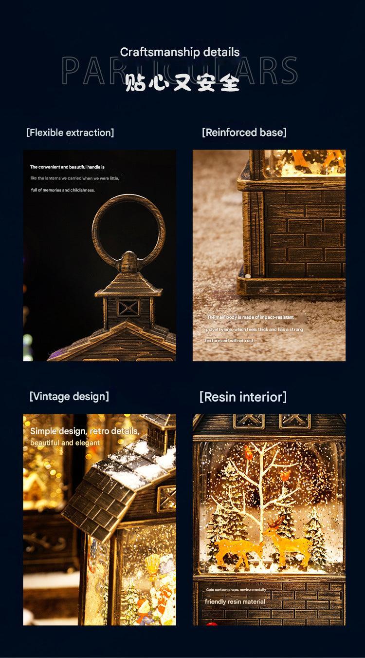 • Rotating festive figurines feature for an enchanting display of Santa and Snowman in a cozy barn setup.