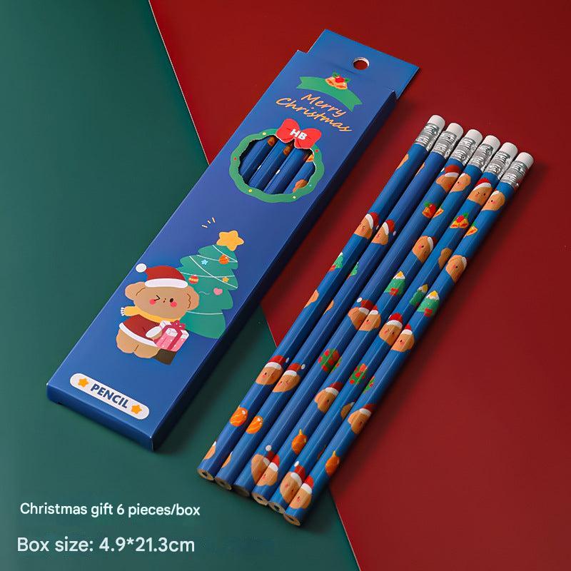 Christmas-Themed Pencil Set for Kids, HB Sketch and Drawing Pencils with Erasers, 6-Pack Gift Box