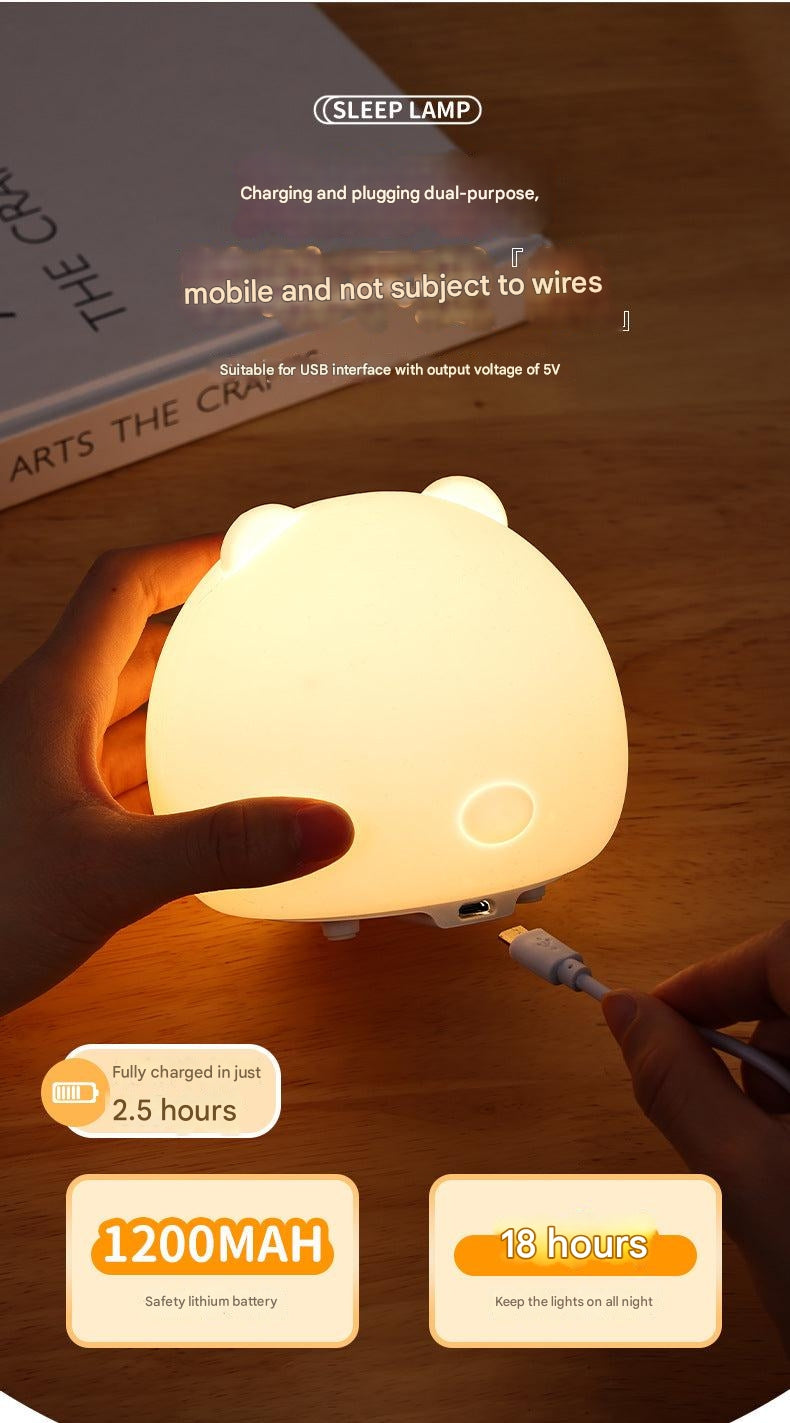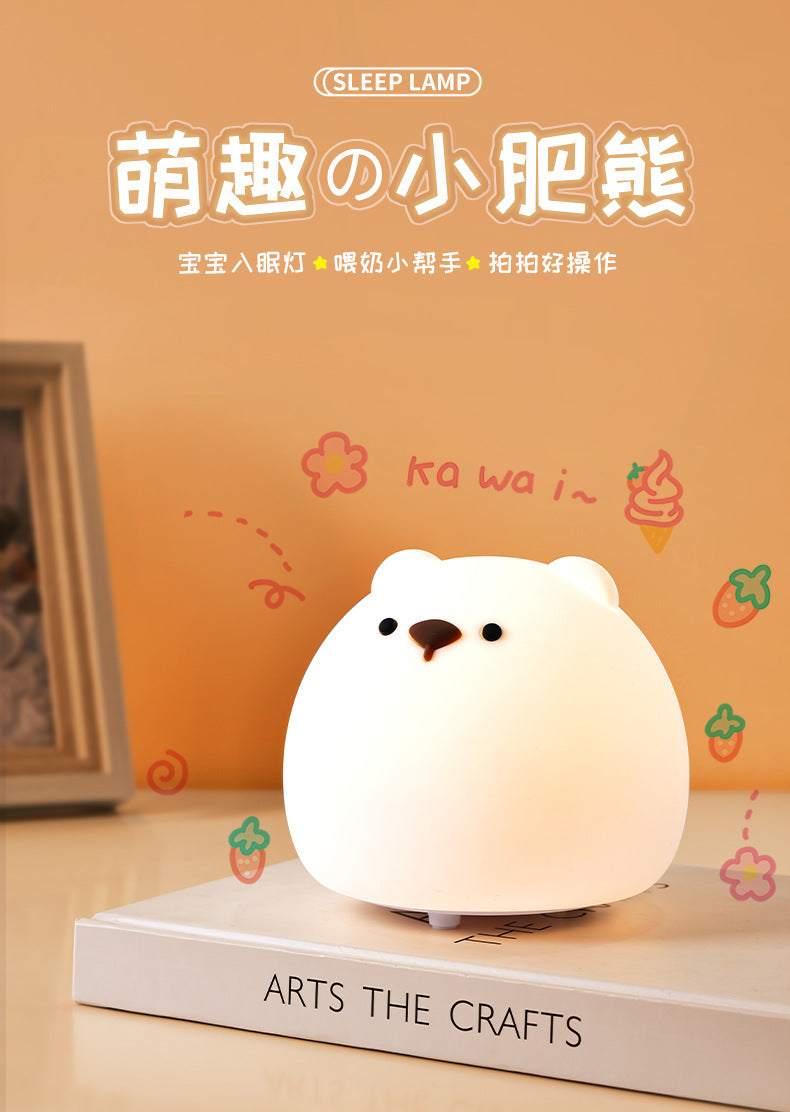 Chubby Bear Silicone Night Light - Colorful Creative Rechargeable Touch Lamp for Bedroom, Perfect Christmas Gift for Girls