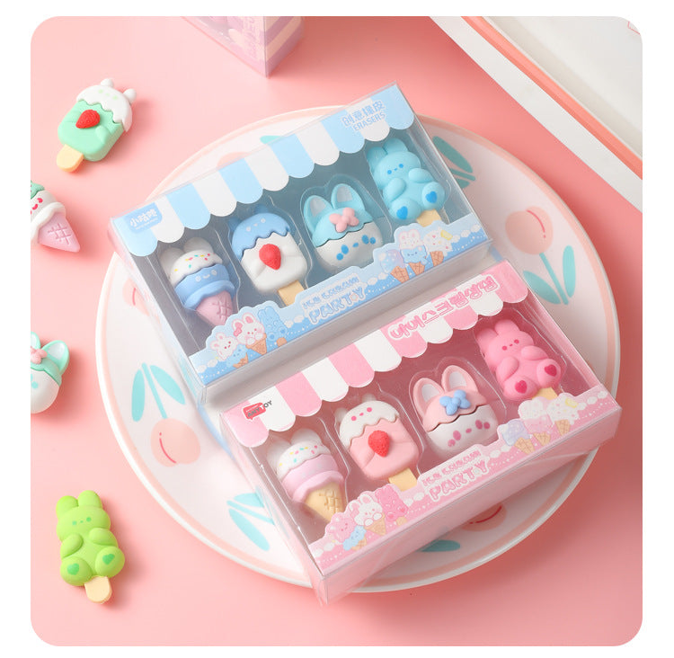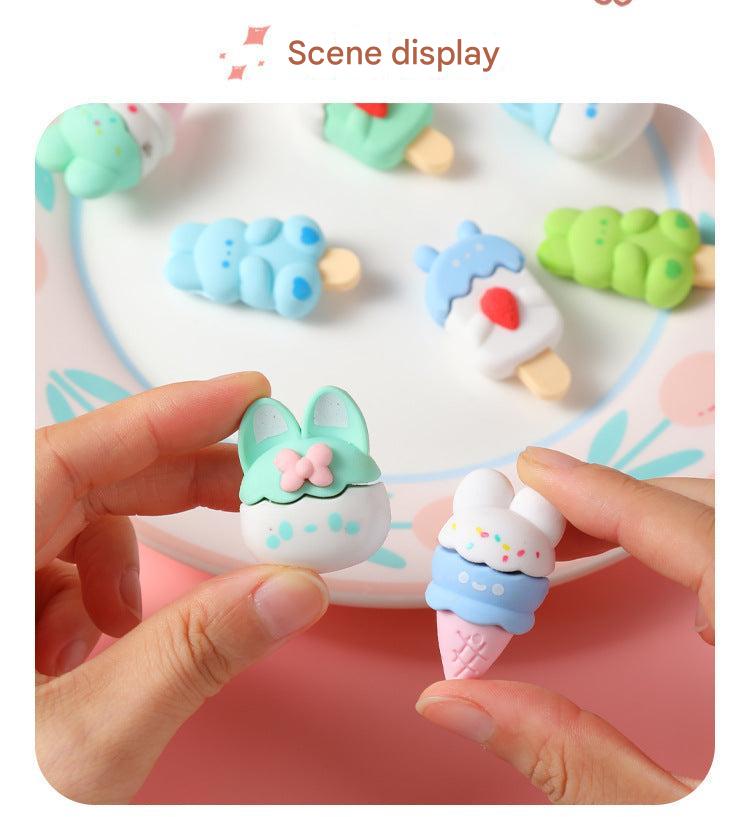 Colorful Bunny Dessert-Themed Eraser Set for Kids - Perfect for School Supplies and Party Favors