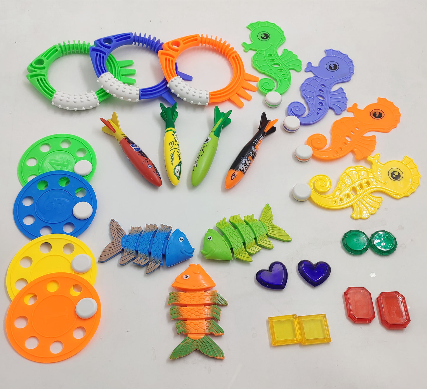 • Entertaining Underwater Set: Includes colorful diving sticks, fish, and shiny gemstones, perfect for ages 4-6.
