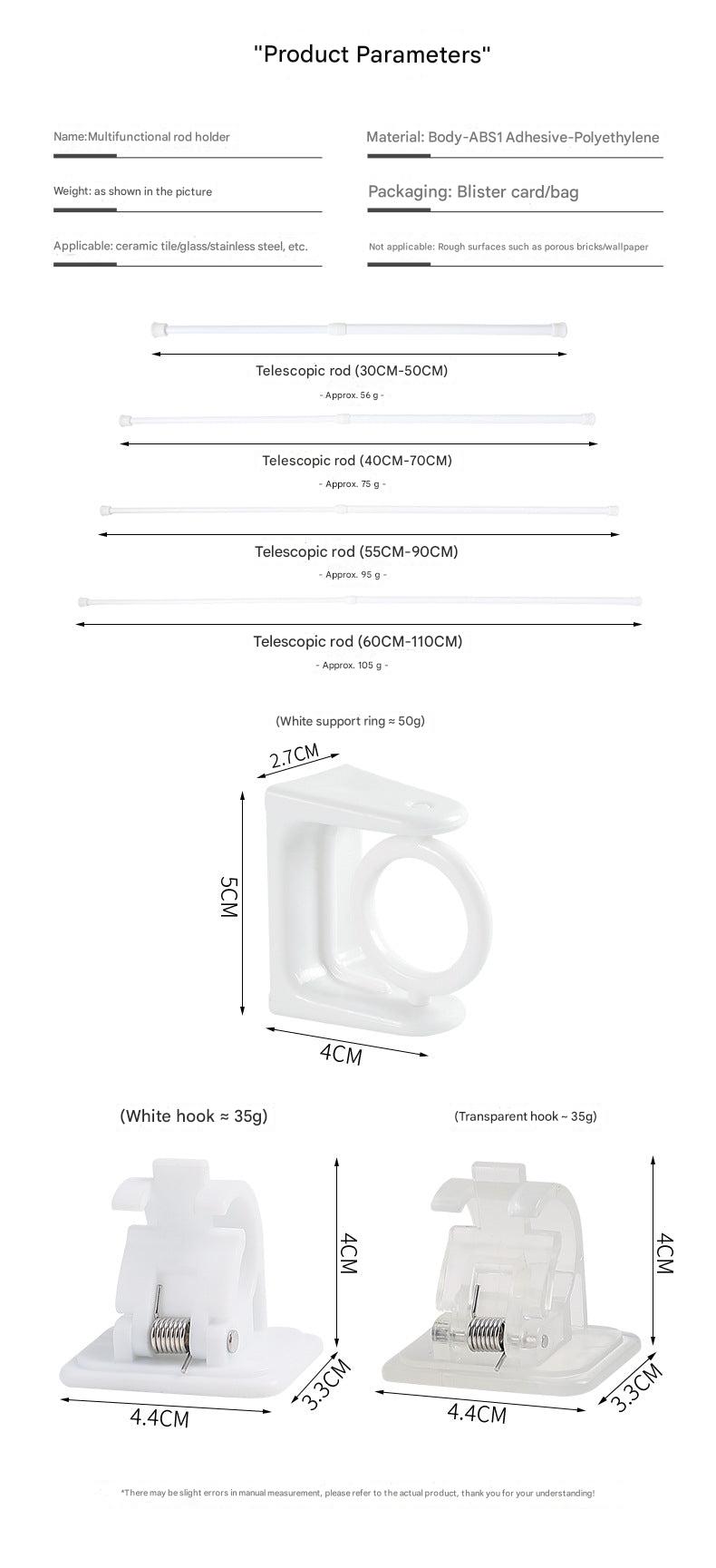 Our No-Drill Curtain Rod Hooks are designed for quick and easy installation without the need for tools or drilling. These hooks utilize a strong adhesive that securely holds your curtains in place, ensuring they never fall. Perfect for those who want to avoid wall damage and enjoy a hassle-free setup. Available in various adjustable rod lengths, they fit seamlessly into any window frame. Whether you need them for your home, office, or special event, they're compatible with a wide range of curtain types. Upgrade your window decor without the mess!