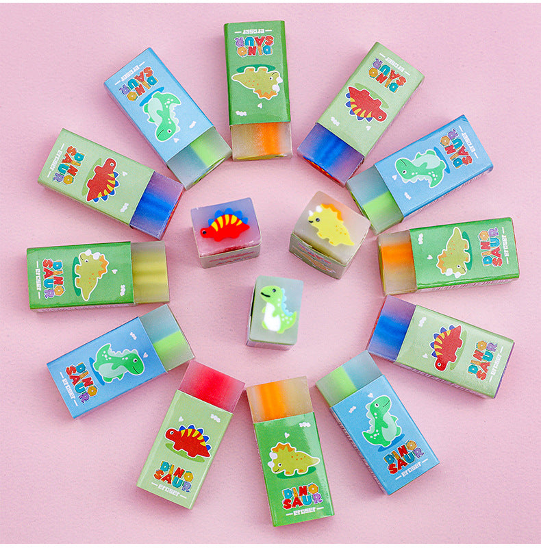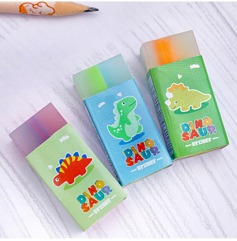 Enhance your child's school supplies with our Cartoon Dinosaur Eraser! Designed for delight and functionality, each eraser features a vibrant dinosaur illustration that captures the hearts of kids and encourages them to keep their study spaces neat. Made from high-quality, non-toxic PVC, these erasers are built to handle the mistakes of any graphite pencil, ensuring clean corrections without damaging the paper. Measuring just 4.6 x 2.1 x 1.5 cm and weighing 17g, these erasers are perfect for on-the-go corrections. Ideal for giving as personal gifts or using as prizes at parties or educational events, these erasers come in a variety of styles to please any young learner or dino lover. Whether for daily use or special occasions, these erasers add a touch of fun and functionality to any pencil case.