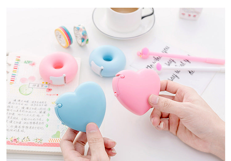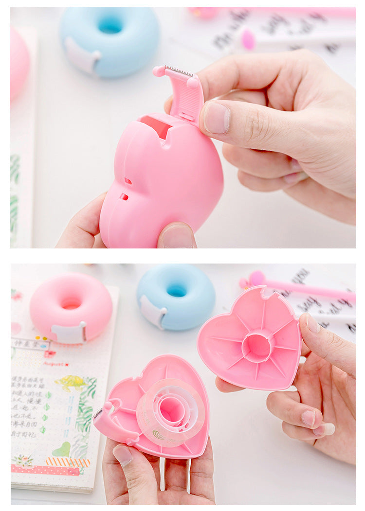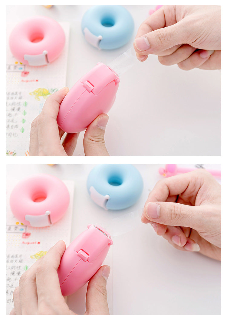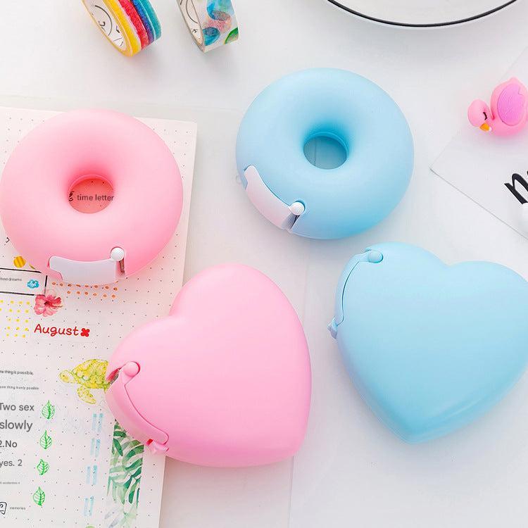 Cute Cartoon Donut-Shaped Tape Dispenser with Cutter, Portable and Lightweight Stationery Accessory