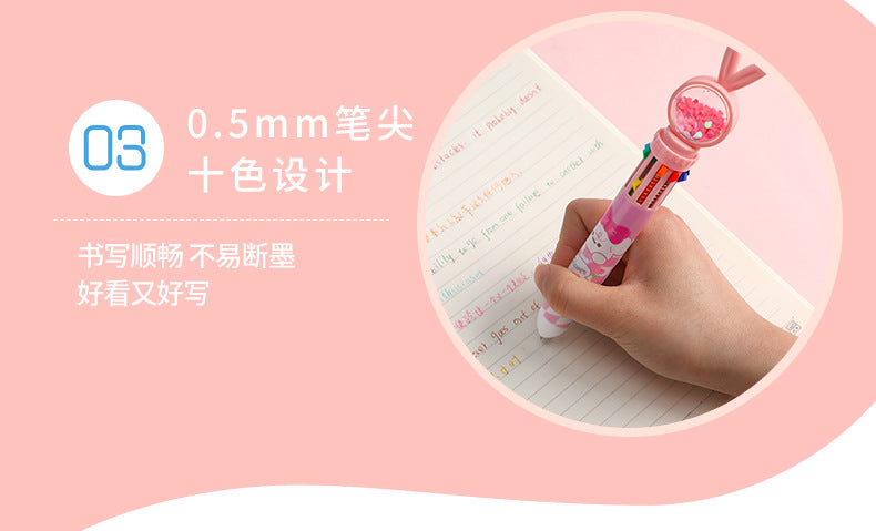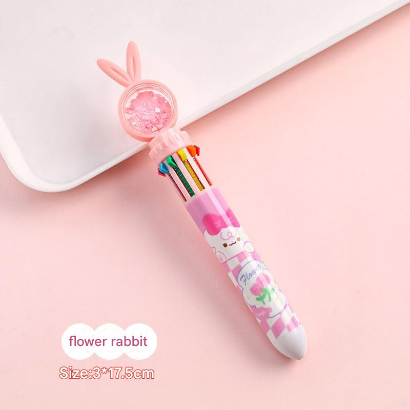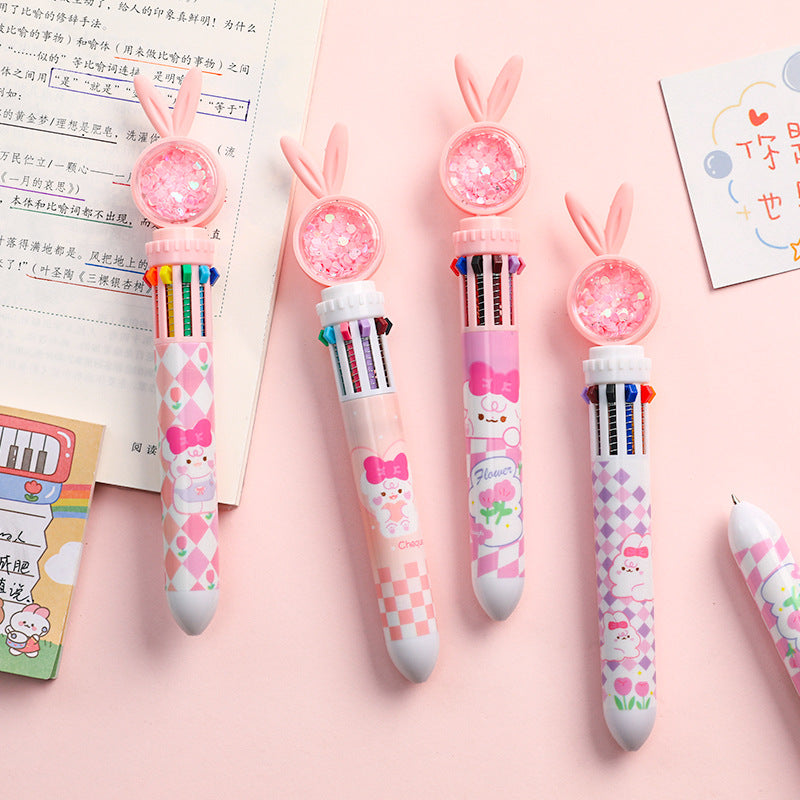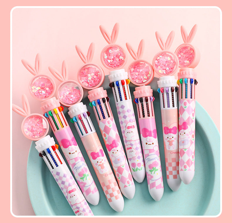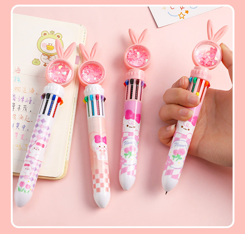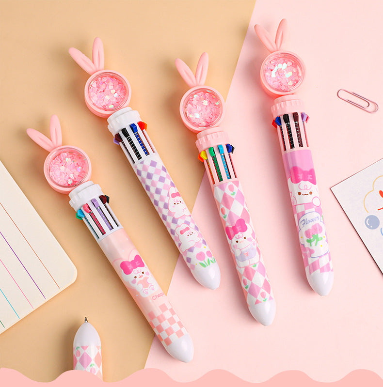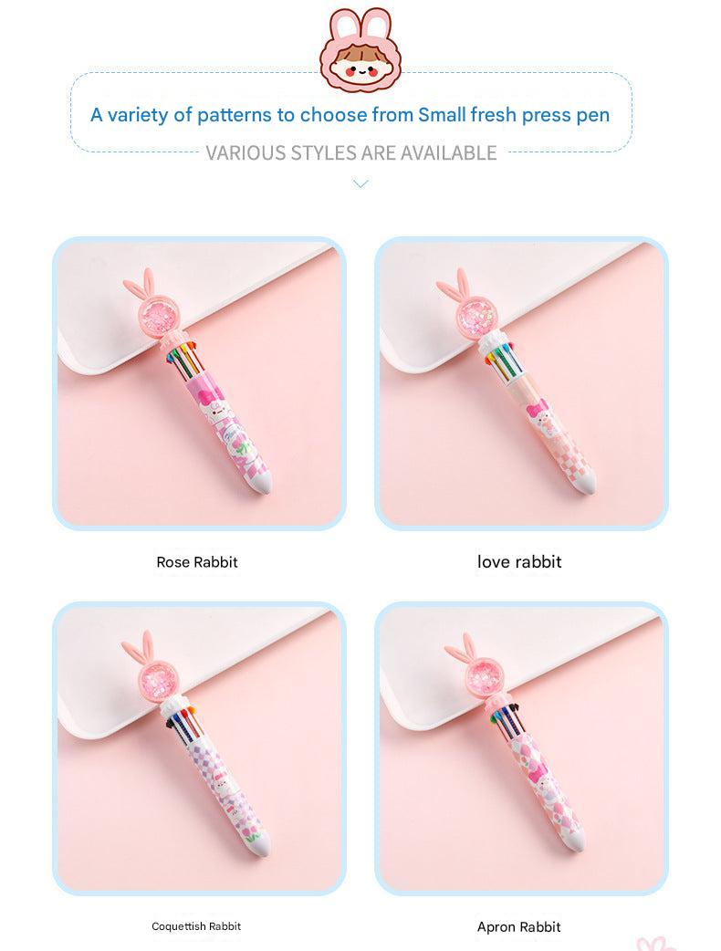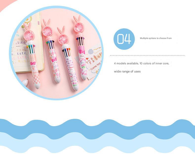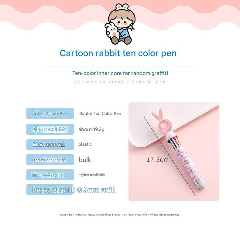 Cute Cartoon Rabbit Multi-Color 10-in-1 Retractable Ballpoint Pen for Students and Office Use, 0.5mm