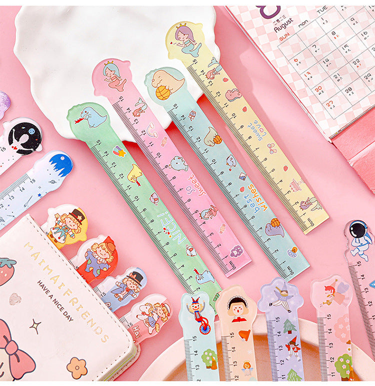 Cute Cartoon-Themed Rulers for Kids and Teens - Colorful 15cm Measuring Tools for School and Drawing