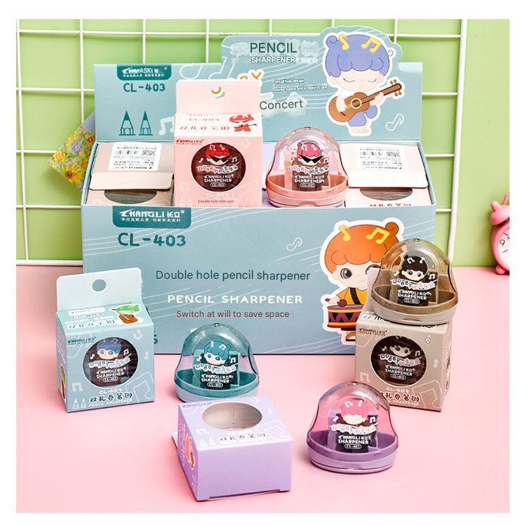 Cute Dual-Hole Pencil Sharpener for Kids - Cartoon-Themed, Mini Portable Sharpener for Students