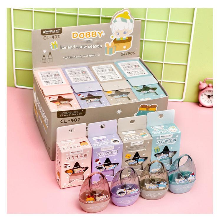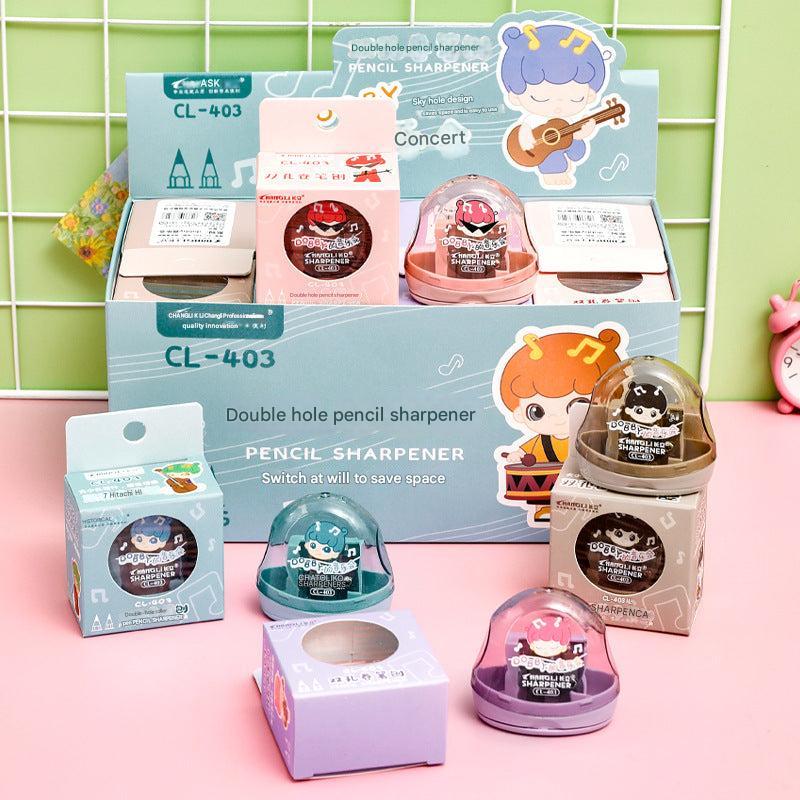 Introducing our Cute Dual-Hole Pencil Sharpener, tailor-made for children and students. Featuring vibrant, cartoonish designs, this sharpener not only appeals visually but is also highly functional. It's equipped with a dual-hole accommodating different pencil sizes, making it perfect for various drawing and writing utensils. Thanks to its compact and lightweight design, it can easily fit into any pencil case, desk drawer, or backpack, ensuring that sharp pencils are always at hand. Cleaning is a breeze with its detachable shavings container, simplifying maintenance and keeping your work area tidy. Designed with a manual turn mechanism, it offers a safe sharpening experience that is suitable for users of all ages. It's the perfect choice for gifting during school celebrations, birthdays, or any festive occasion!