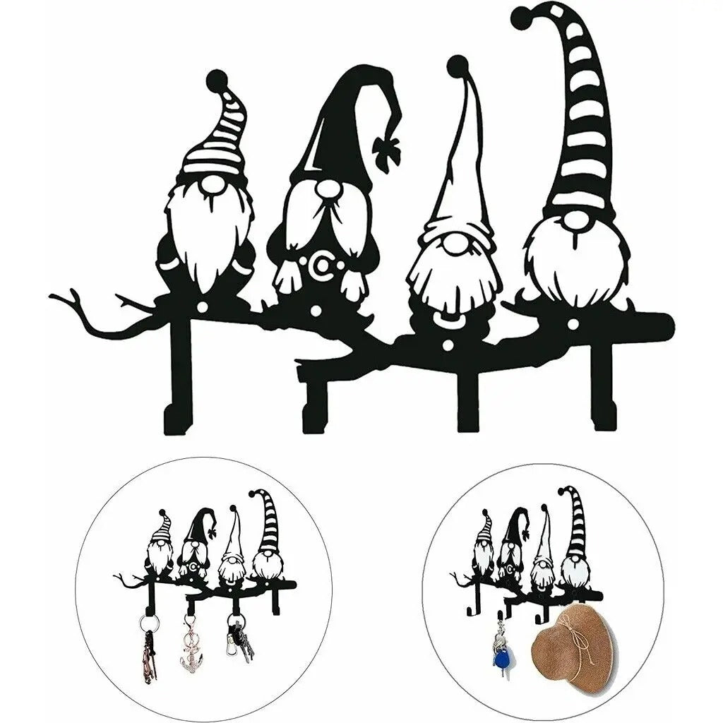 Decorative Gnome Key Holder with 4 Hooks - Wall Mount Key Rack for Home Organization