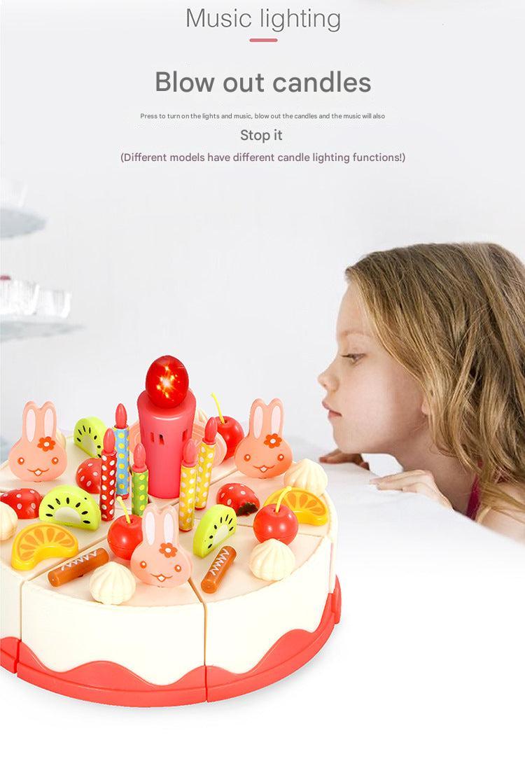 Kids 82-Piece Electric Light & Sound Sensory DIY Fruit Cutting Birthday Cake Toy Playset