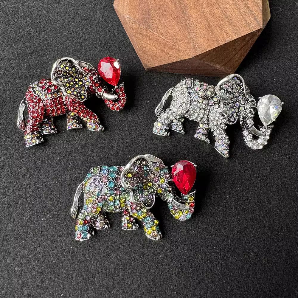 Elegant Alloy Elephant Brooch with Rhinestones - Fashion Forward Accessories