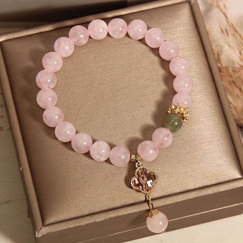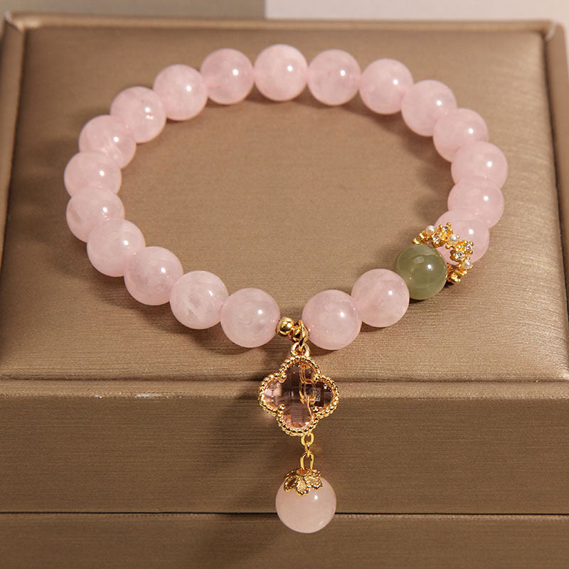 Elegant Pink Quartz Bracelet for Women with Four Leaf Clover Pendant - Perfect Gift for Friends