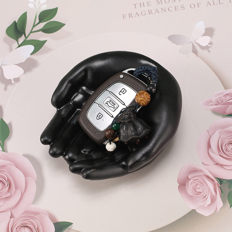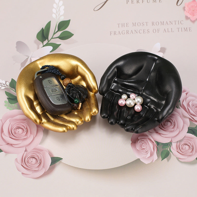 black resin heart hand ring holder