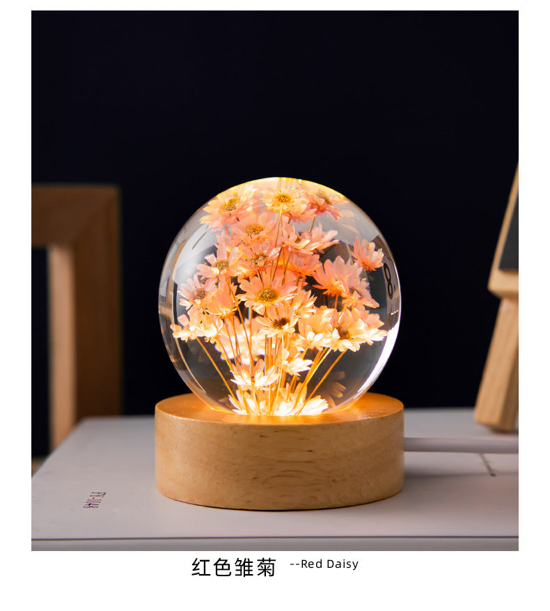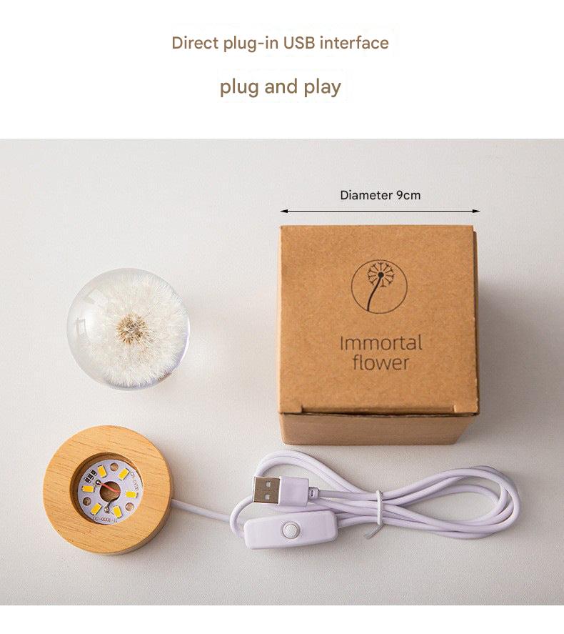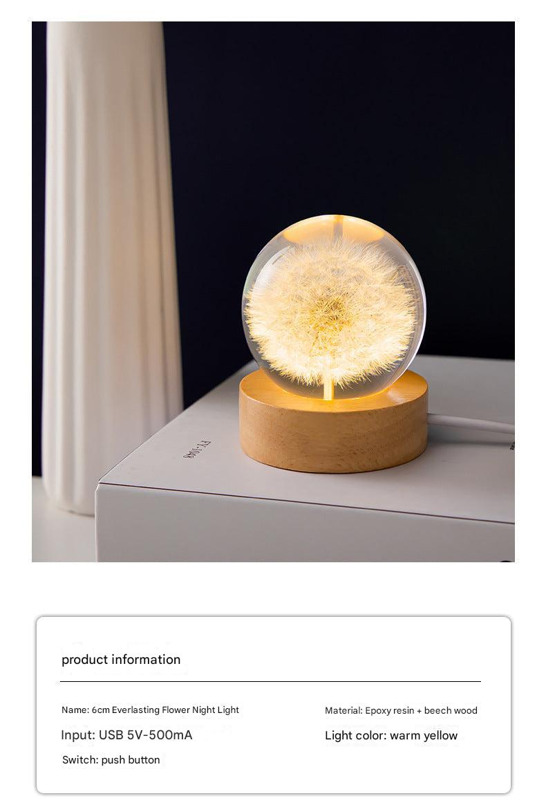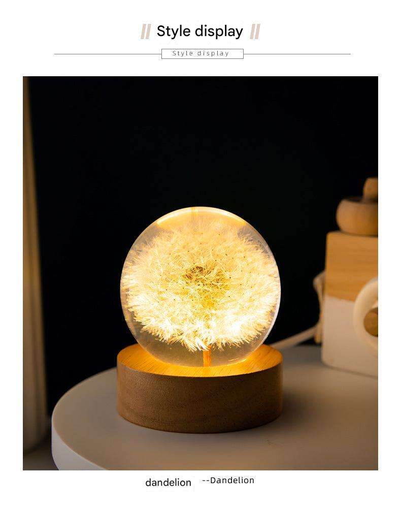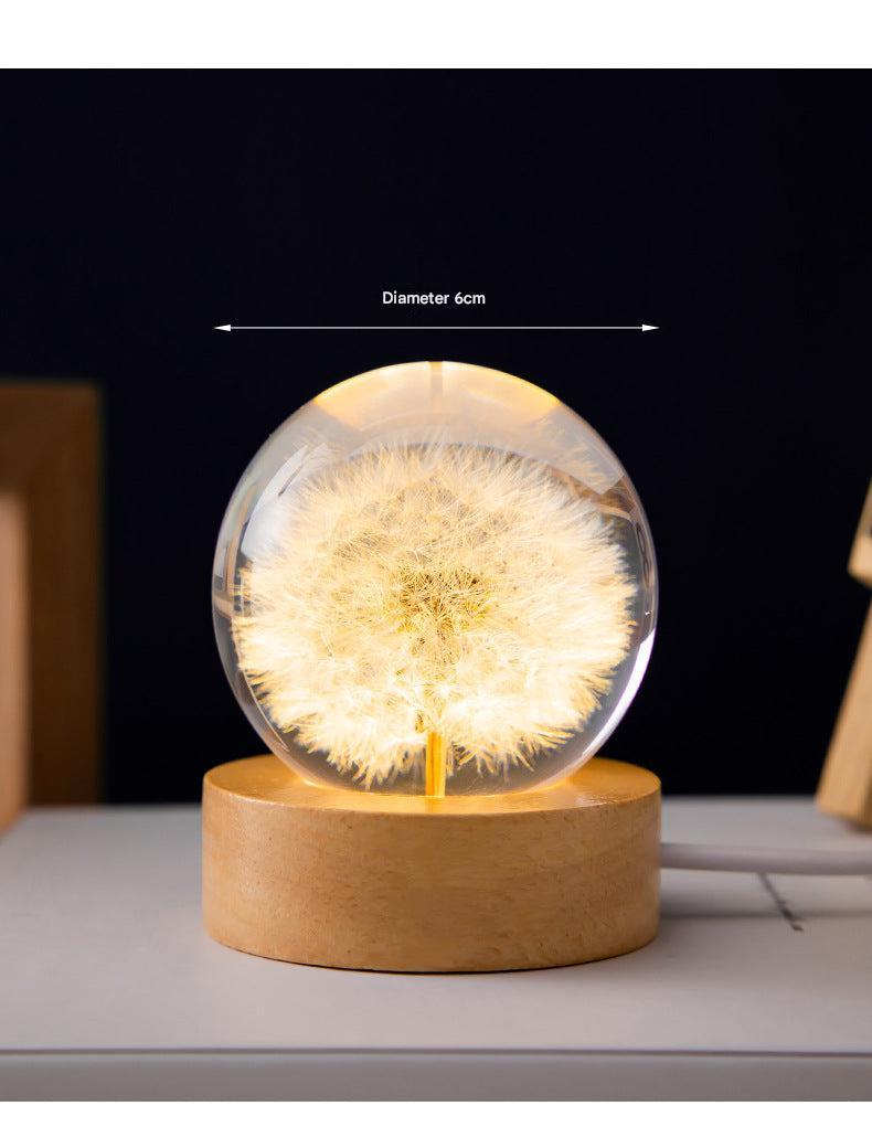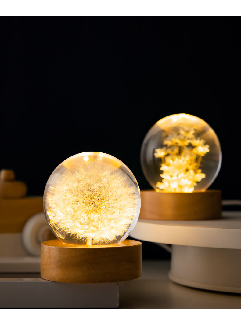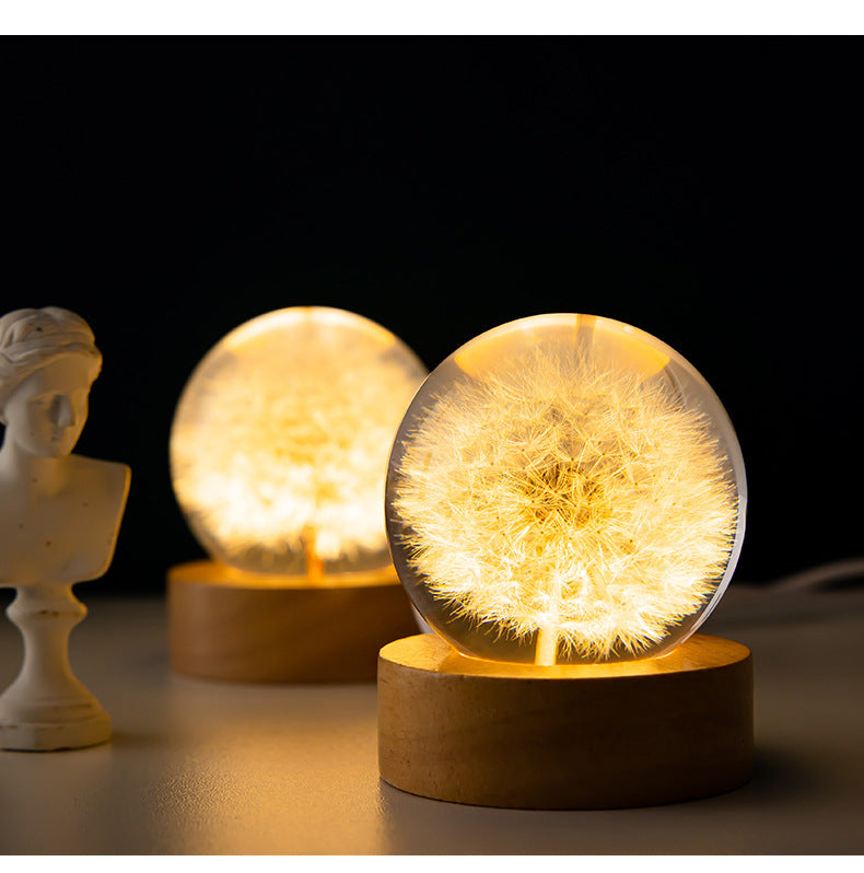Enchanted Dandelion 3D Crystal Ball Night Lamp with Wooden Base, Perfect Gift for Various Occasions