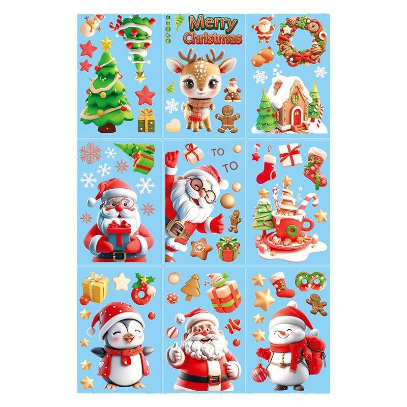 Festive Christmas Window Glass Stickers with Santa, Reindeer, and Snowman - Perfect Holiday Decor