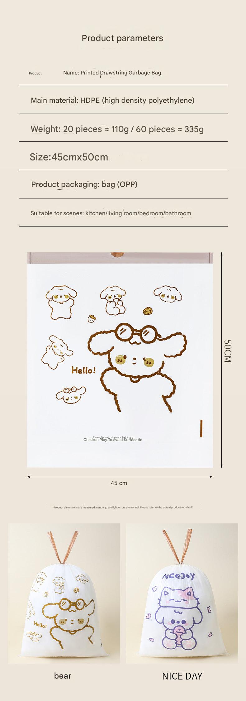 Our Heavy-Duty Drawstring Kitchen Trash Bags provide a reliable solution for managing household waste. These plastic bags feature an automatic closure system, allowing for easy disposal without mess or hassle. Crafted from durable, tear-resistant materials, they're built to withstand both light and heavy loads, making them suitable for a variety of uses—from everyday kitchen waste to event clean-ups. They come in several attractive designs, ensuring you can find the perfect match for your home decor. Experience the ease of waste management with these dependable trash bags, designed to keep your kitchen tidy and odor-free.