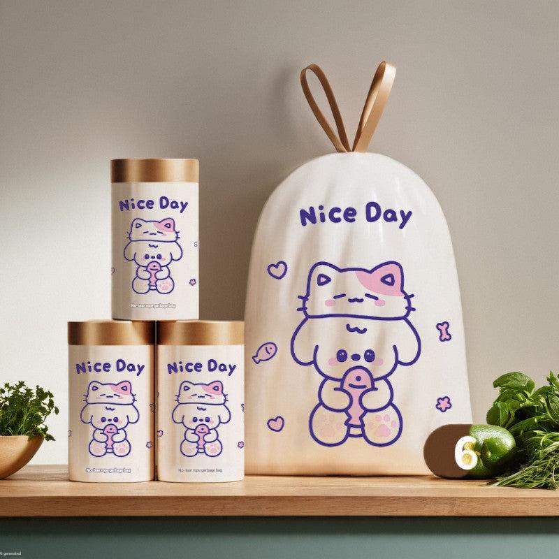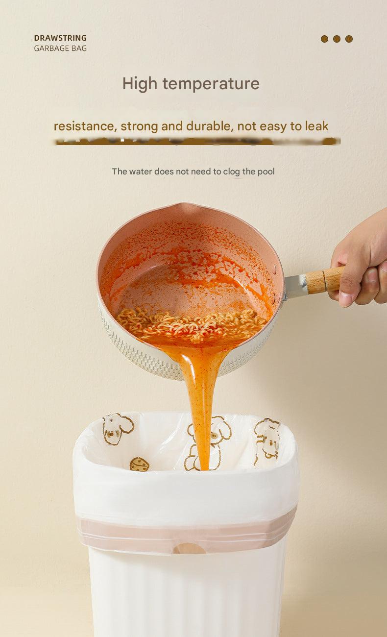 Heavy-Duty Drawstring Kitchen Trash Bags - Tear-Resistant, Odor-Free, Automatic-Closure Plastic Bags for Home Use
