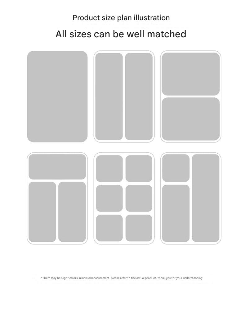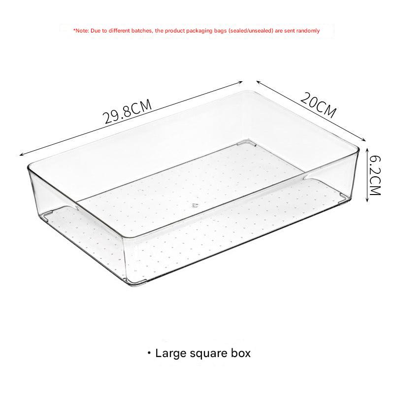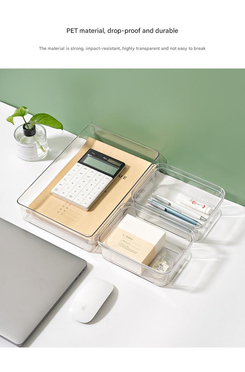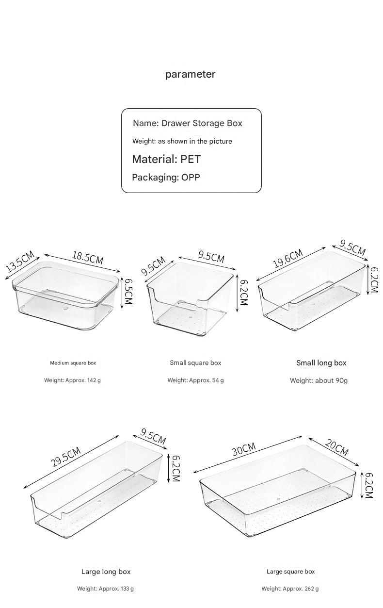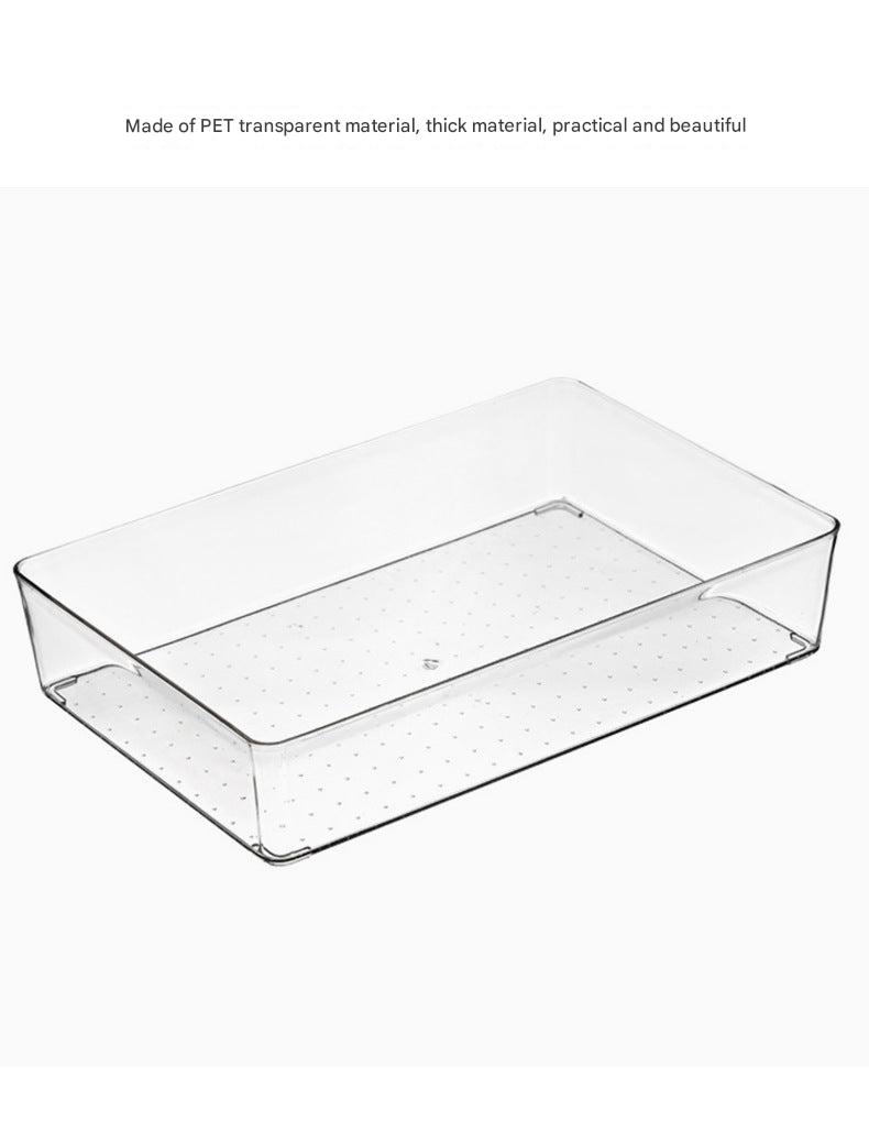 Enhance your space management and organization with our space-efficient Desk Drawer Organizer. This versatile storage option is ideal for kitchens, offices, and vanity drawers, keeping small items like cosmetics, stationery, or utensils neatly sorted. The stackable design maximizes drawer utility allowing for customized organization. Its clear PET plastic construction not only contributes to its durability but also allows you to easily identify the contents of each compartment. Say goodbye to cluttered drawers and welcome a more organized environment with this essential home and office accessory.